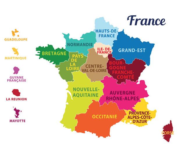 Det finnes 18 franske regioner, hvorav 5 er oversjøiske.