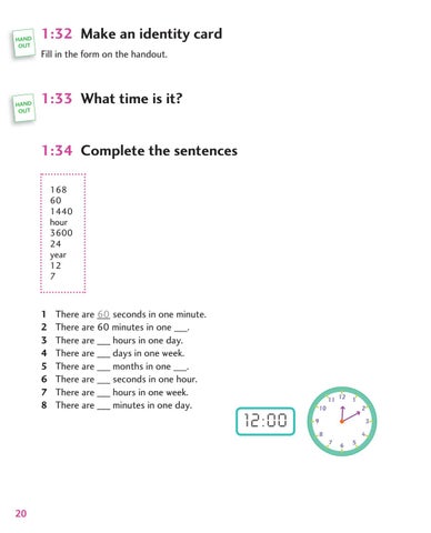 1:33 What time is it? 1:34 Complete the sentences 168 60 1440 hour 3600 24 year 12 7