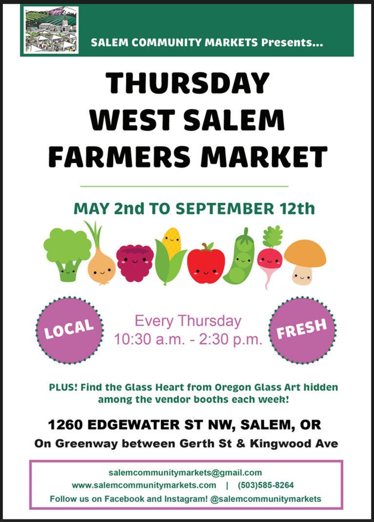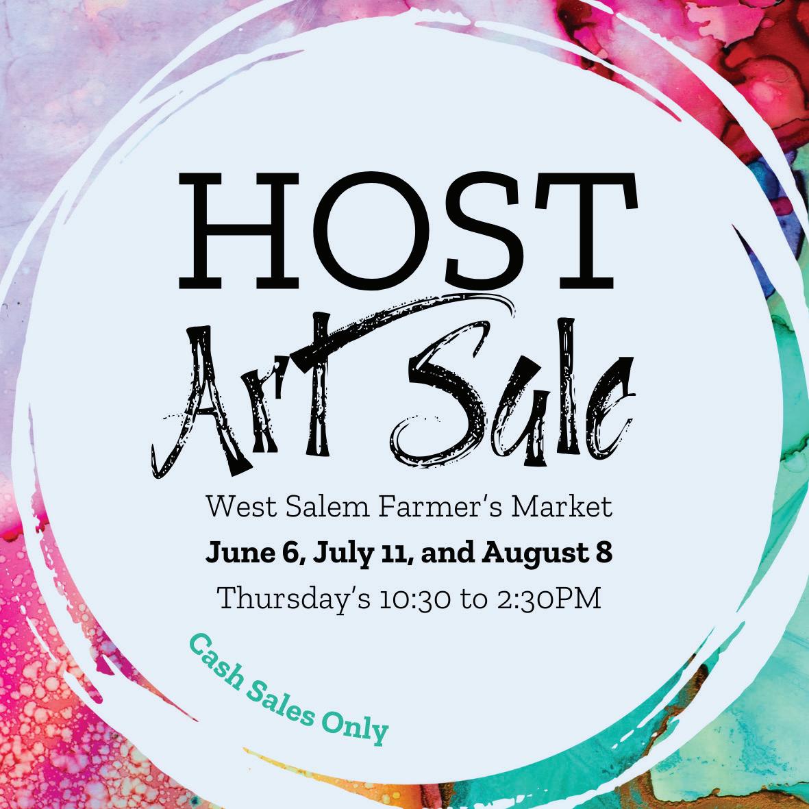 Mark your calendars and join us at the West Salem Farmer’s Market every Thursday this summer. Special days have been reserved for our HOST client to showcase and sell their artwork.