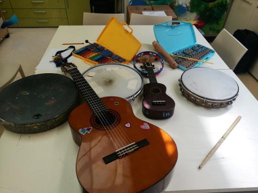 The music therapist offers children to listen to short pieces of music, actively involving them in the use of different instruments.