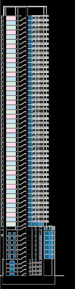 The main challenge behind this project was to have all the apartments facing the Burj Khalifa view from their living rooms In order to achieve this, I created a duplex apartment system splitting the 45 residential storeys into threes, with access only from every other level. This system also helped me achieve an equal number of studios, 1-bedroom & 2bedroom apartments in the entire building