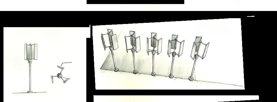 Taking advantage of the prevailing wind by using “NEMOI” wind turbines to produce energy.