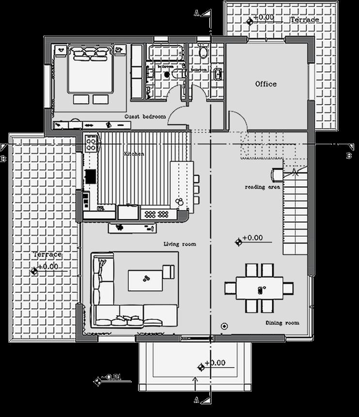 The majority of the spaces receive natural sunlight due to the villa’s correct orientation. The longer side faces south-west to make the most of the sunlight by using a solar space in the south.
