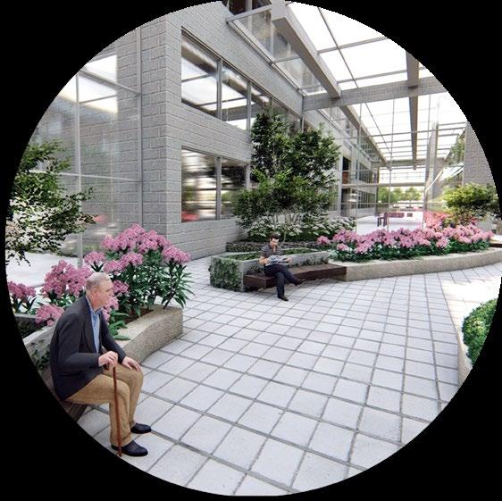 The goal is to connect patients to nature through outdoor views, interior gardens and water elements, as well as locating the most stressful spaces like waiting areas within expansive views allowing clean filtered air, and access to outdoor experiences.