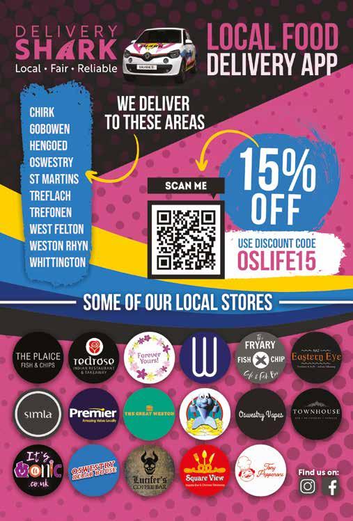 55 A FRIENDLY LOCAL TAXI SERVICE 01691 596 596 • Bookings@oswaldscars.co.uk We accept card payments in all our vehicles Oswestry’s Best Pub Oswestry Pub Scene UK Best Rural Cra Beer Bar/Pub2020 Society of Independent Brewers Market Towns Pub of the Year Shrewsbury & West Shropshire CAMRA baileyhead.co.uk Unit 10 Radfords Field, Maesbury Rd, Oswestry SY10 8RA Tel: 07403737806 www.duffysdiner.co.uk Follow us on Facebook and instagram BRINGING YOU THE VERY BEST IN RAW, APPROPRIATE FOOD FOR YOUR CARNIVOROUS ANIMALS Whether you are already a seasoned raw feeder or interested in switching your animals to a raw diet then we have everything you need and much more. As well as our large range of top quality raw minces, chunks and bones we also supply air dried chews and natural treats as well as herbal supplements to complement a natural diet. SOME OF THE BENEFITS OF RAW FEEDING: ■ Less Sensitivities ■ Great for allergy sufferers ■ Smaller less odorous poop ■ Clean teeth & breath ■ Shiny healthy coat DeliveryService Available FIND US AT: 24 West View CHIRK Wrexham LL14 5HL COMPLETE | PRINTING | SERVICE Serving Chirk, Oswestry, Llangollen, Wrexham and surrounding areas OPEN 10am-2pm | Monday to Friday 01691 774778 PUBLIC HOUSE PRINTING PET SUPPLIES “I have been very impressed with the price, products and service that has been provided by Cartridge World Oswestry, and would happily recommend them to other people.” Daniel Coolin IT Technician Oswestry School 18 Salop Road Oswestry Shropshire SY11 2NU T 01691 659966 • cwoswestry@cartridgeworld.co.uk INTERNET PRICING WITHOUT WAITING! INK, TONERS AND PRINTERS FREE LOCAL Same day delivery if in stock, (next day at worst) FREE ADVICE Expert advice from your global brand FULLY GUARANTEED Products and Service FREE PHONE SUPPORT To help you get the best from your printer PRINTING SOLUTIONS