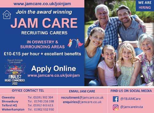 48 A FRIENDLY LOCAL TAXI SERVICE AIRPORT TRANSFERS AVAILABLE 01691 596 596 • Bookings@oswaldscars.co.uk Find out more and book a free 20 minute consultancy chat at www.8bits1byte.co.uk hello@8bits1byte.co.uk • 01691 700 700 Unit 10A, Whittington Business Park, Oswestry, SY11 4ND UPVC and Aluminium Door Locks Mortice locks to BS3621 Master Key Systems Window Locks & Door Bolts Restricted Lock and Keys Systems Euro Cylinders to TS007 3Star Locks & Padlocks Keyed Alike (One Key fits All) Old Keys Cut & Locks Repaired LOCAL INDEPENDENT LOCKSMITH DOMESTIC & COMMERCIAL OSWESTRY • ELLESMERE • SHREWSBURY • WELSHPOOL • NEWTOWN Tel: 01691 828111 Mobile: 07803 06 65 68 www.paulashbylocksmith.co.uk • palocks03@gmail.com Cae Llwyn, Deytheur, Llansantffraid SY22 6TE For All Your Lock Services:“Throughout Mid Wales & Shropshire Borders” Est.2003 CELEBRATING 20 YEARS IN BUSINESS 01691 701 007 The Showroom Welsh Frankton Oswestry SY11 4NX With lots of products on show, visit our local showroom where our specialist advisers offer a friendly expert service. A family company specialising in all aspects of Mobility and Disability Aids MOBILITY AIDS IT SOLUTIONS LOCKSMITHS