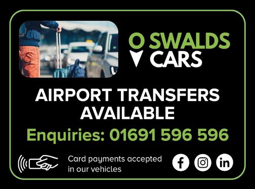 40 A FRIENDLY LOCAL TAXI SERVICE Card payments accepted in our vehicles 01691 596 596 • Bookings@oswaldscars.co.uk 5 YEAR GUARANTEE Allumroll Garage Doors Contact us 01691 674222 07967 672053 sales@allumroll.com www.allumroll.com GARAGE DOORS