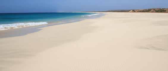 Powder-soft sand washed by turquoise sea, lined with swaying palm trees: the beaches in Cape Verde are paradise.