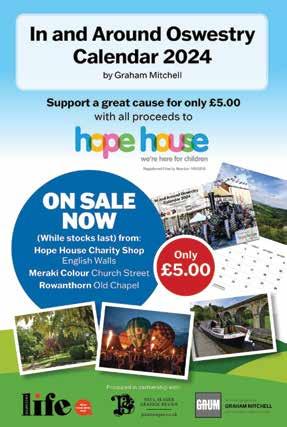 Joint Managing Director, David Lee-Birch of DTS Media Limited said, “We are very privileged to have such a prestigious local photographer, Graham Mitchell working alongside our brand, supporting the Oswestry Life magazine both in print and daily on our social media channels, therefore we will once again be showcasing Grahams photographs, capturing the beauty we have on our doorstep within our fantastic glossy 2024 calendar. All proceeds from the sale will go direct to Hope House.