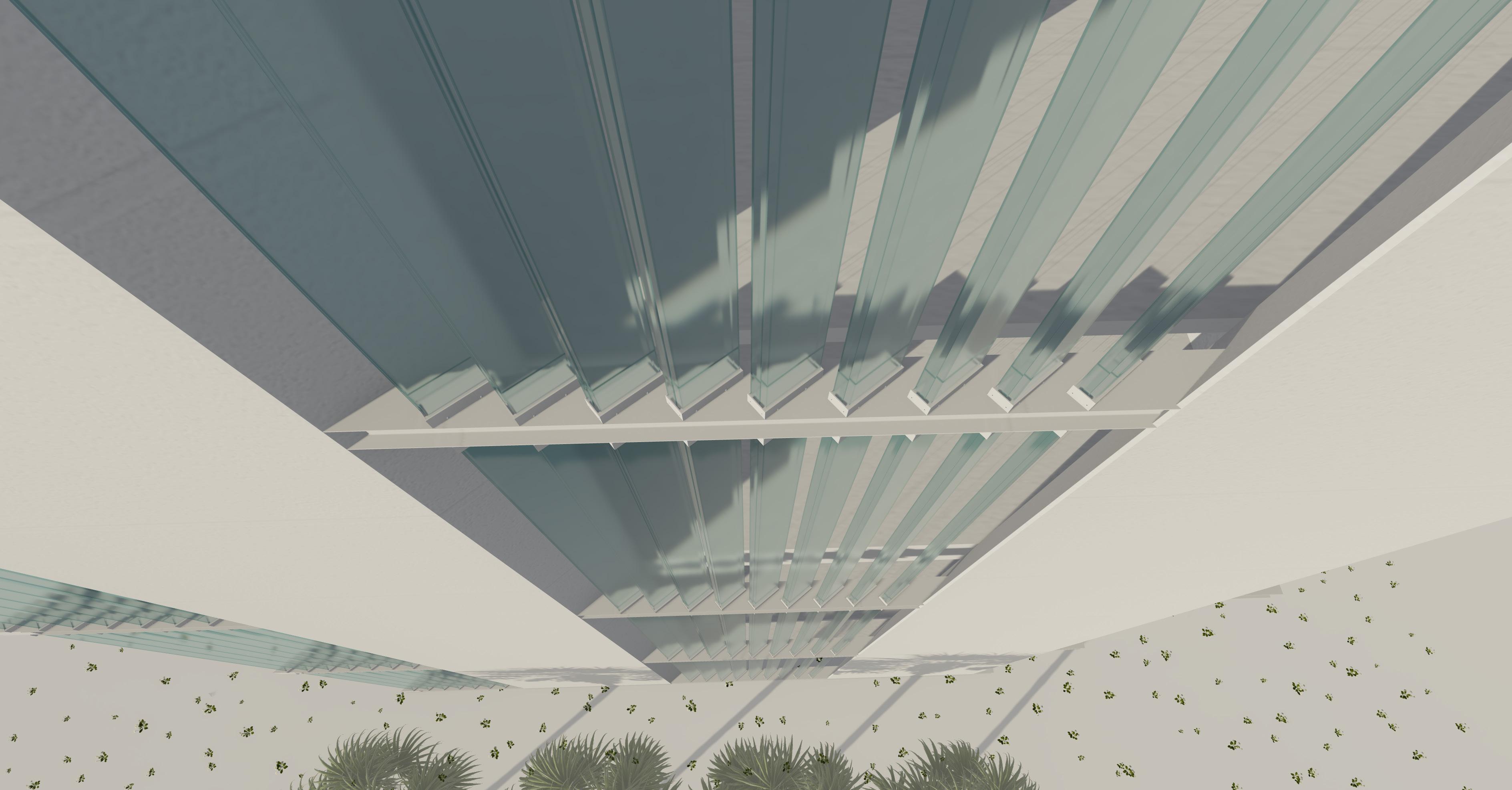 It is usually used for interior and exterior facades. In this Muraba Residences glass louvre desining project, channel glass system is designed for vertical glass louvres.
