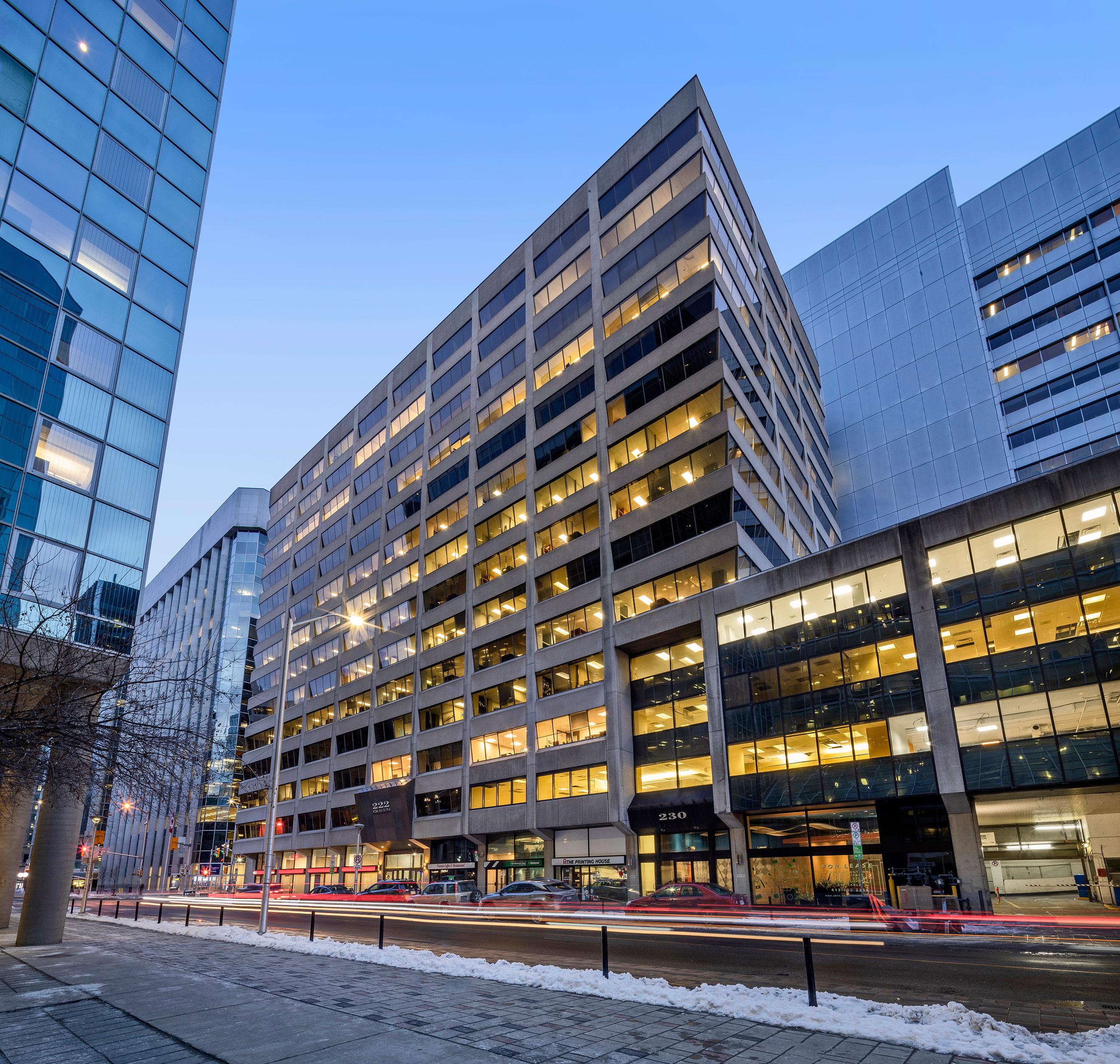 Ideally positioned at the corner of Queen and Bank Streets, just south of the Parliamentary Precinct, 222–230 Queen Street offers exceptional walkability to Parliament Hill, the Supreme Court of Canada, and the Bank of Canada, along with a wide range of dining, retail, and entertainment amenities.