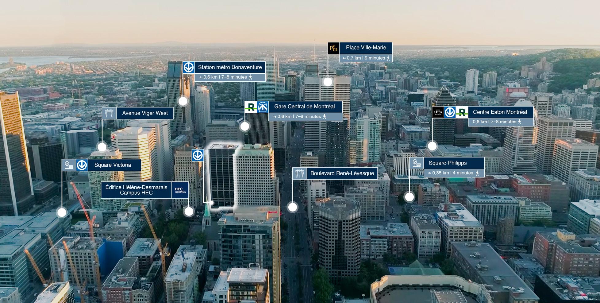 Located near Old Montréal and just minutes from Central Station, 1080 Beaver Hall Hill benefits from a strategic central location, directly connected to Montréal’s underground pedestrian network and surrounded by a full range of services.
