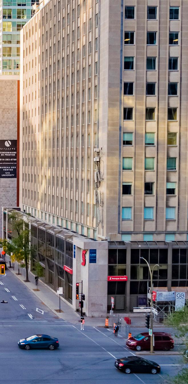 Situé au cœur du centre-ville de Montréal, le 1155, boulevard Robert-Bourassa bénéficie d’un emplacement stratégique au sein du principal quartier d’affaires de la ville. Entouré d’immeubles corporatifs, d’institutions financières, de restaurants et de nombreux services, la propriété s’inscrit dans un environnement dynamique et recherché par les entreprises souhaitant s’établir dans un secteur central et bien desservi.