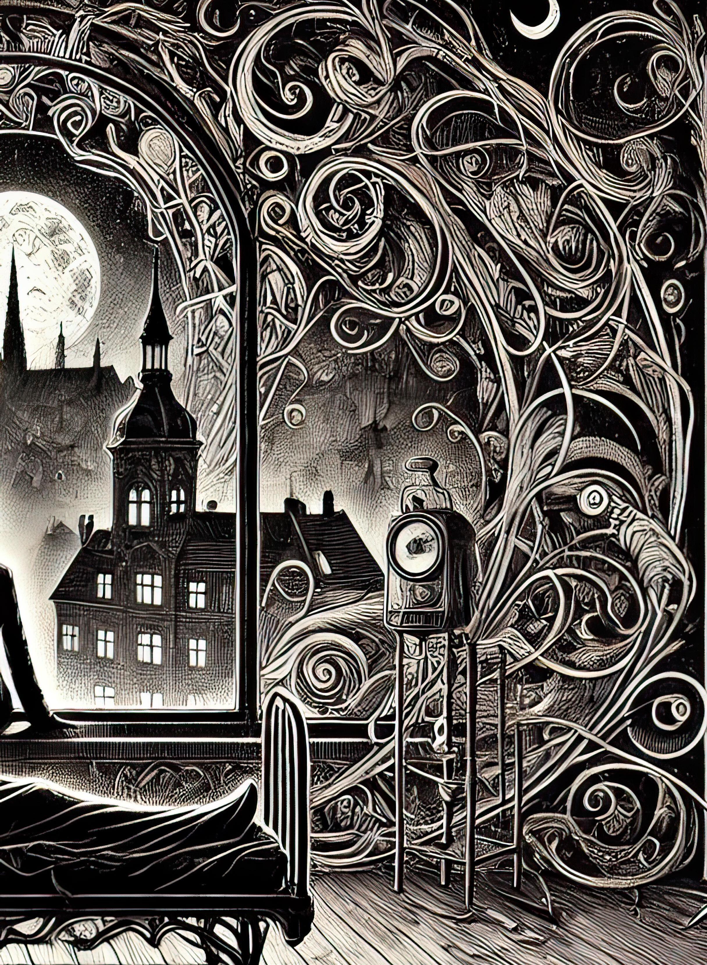 “Dorothea, how could I concentrate on finding work when all my thoughts fixated on her? On my Ligeia. I realized your parents just threw me a lifeline. And it suddenly became clear to me: Everything was going exactly according to the plan of my beloved mistress of the night!”