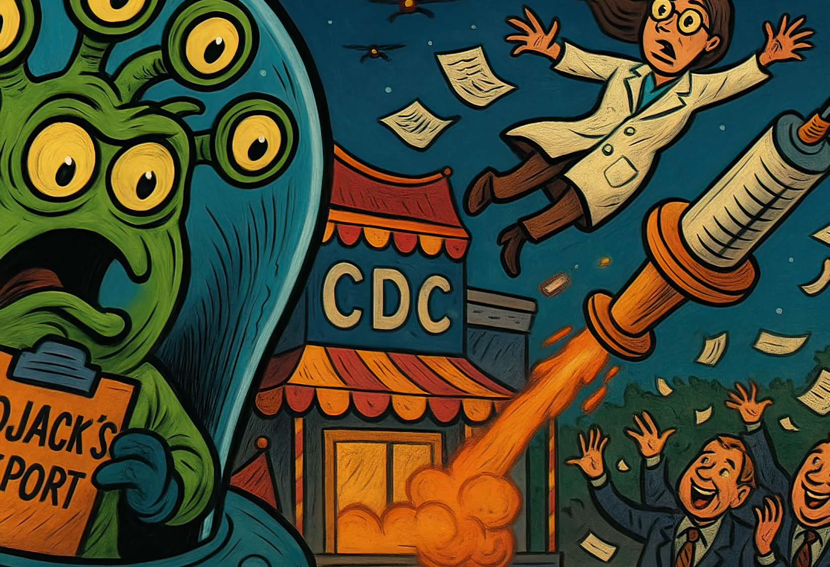 Amid the hush of drifting telemetry, a fresh Communiqué ignites— equal parts farce and flare. From Grawth’s ion-wreathed balcony, we watch a government costume its disease sentinel for pageantry, then cut the sentinel loose. The spectacle ripples outward: experts muzzled, labs darkened to the click-track of applause, slogans lofted like weather balloons while case counts rise. The choreography dazzles; the math refuses. Hojack logs the lesson in cold script: biology is not a brand, outbreaks ignore optics, and sacking the mapmaker does not move the cliff. From our apogee we file it as anomaly, spectacle, and warning.
