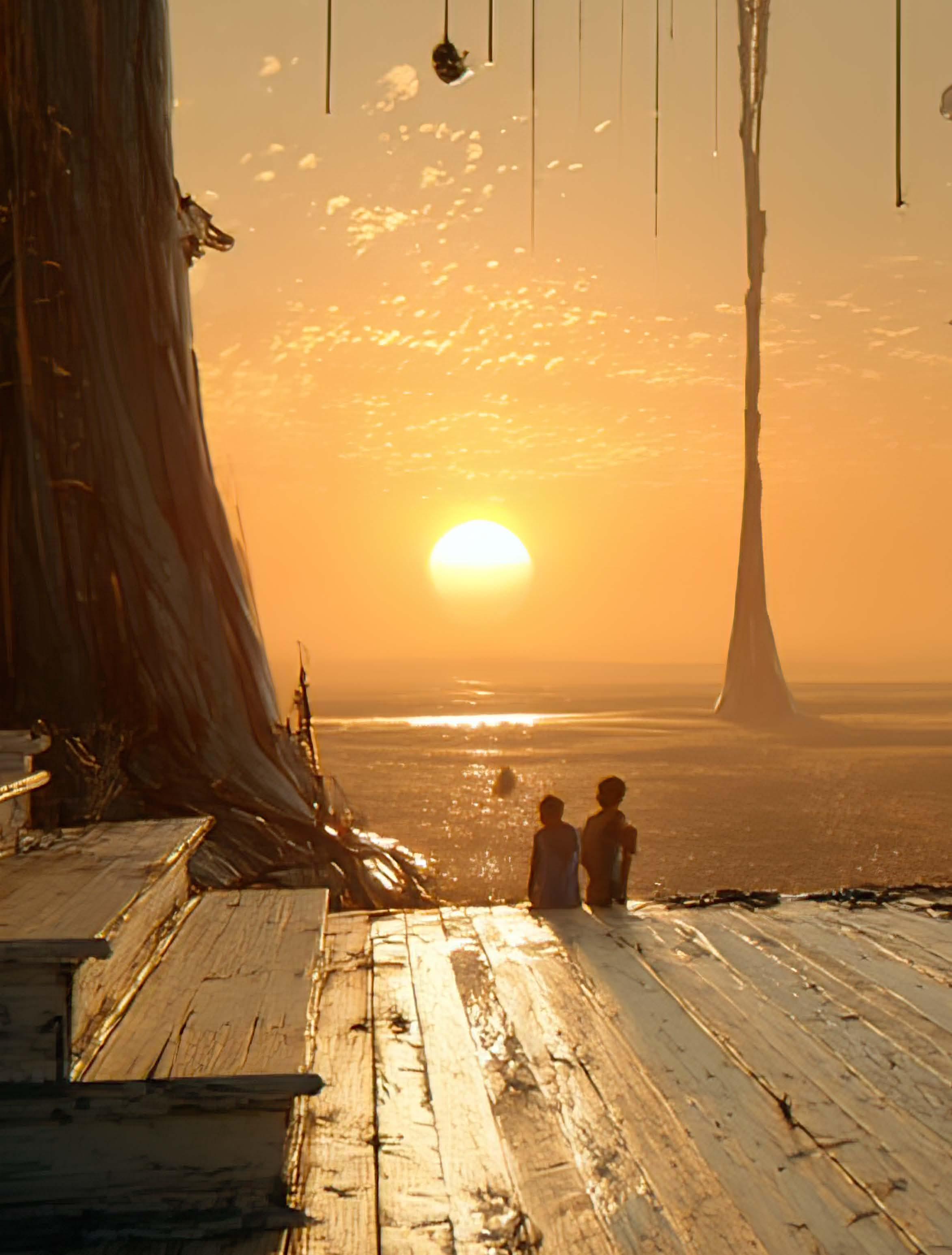 But then a fire rose from deep inside him. He saw his Pa, Ma, and Tommy, all alive in the distant future, Tommy grown into a man. The fear of darkness clutched at his heart. So much a part of this world as were the trees and lakes and floating mountains. And he did not care. ‘Matter of fact, for once in my life, I’m going to be free. Let myself go. Completely!’