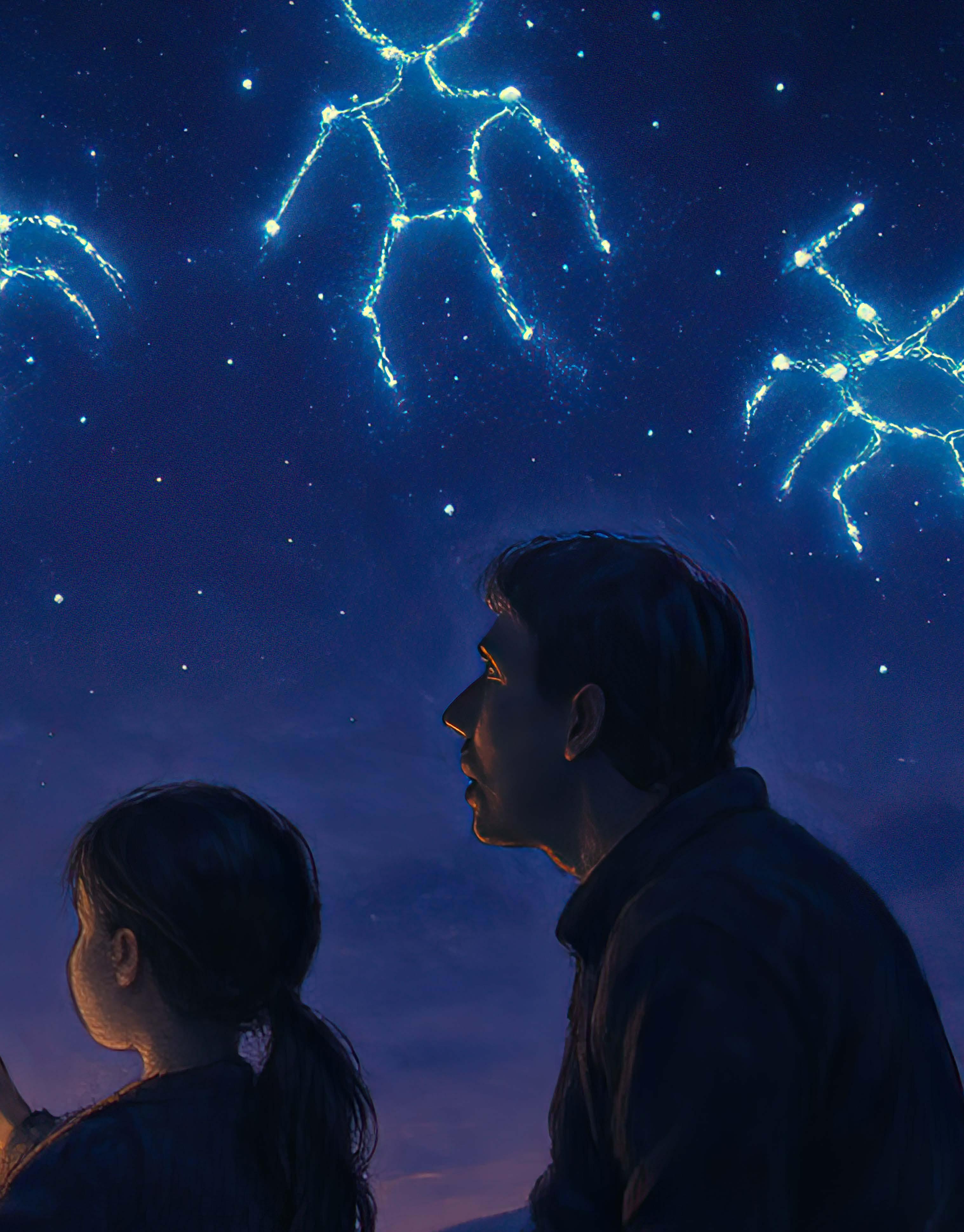 this quarter’s gravity well, we chart the luminous wake it leaves behind. These pages moved through identity breaches and braided timelines, fireside ancestries and border watches, a quiet nun sighting down iron at alien dusk. In poems and communiqués, in screens and print, the paradox of speculation holds: to predict and to pierce, to model and to move. We depart with instruments hot and questions hotter, constellations still rewriting themselves. Keep your sensors tuned and your thresholds loose. Until the next approach—follow the signal.