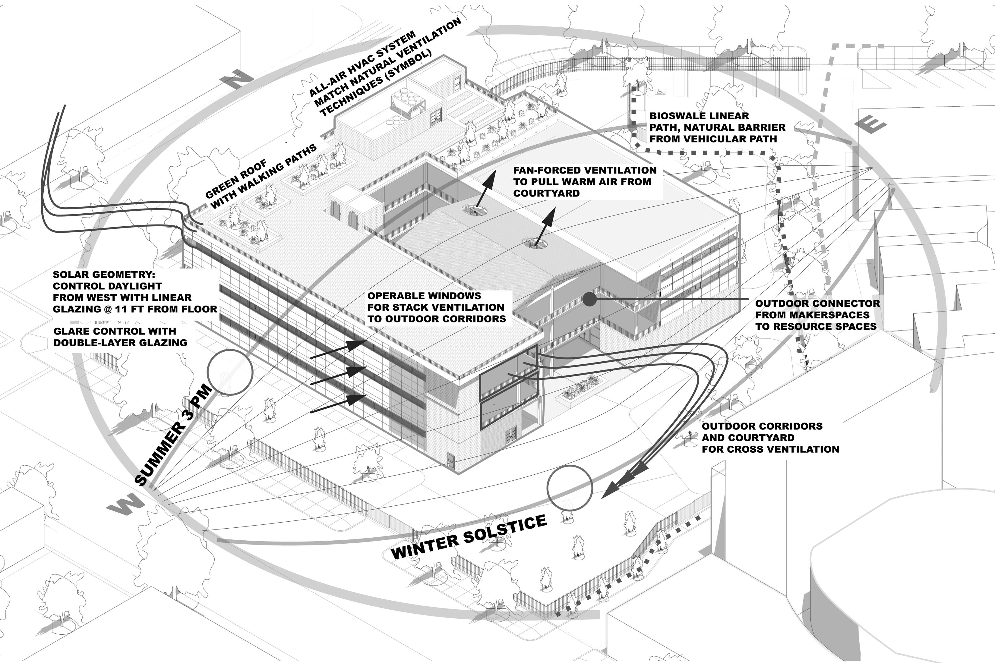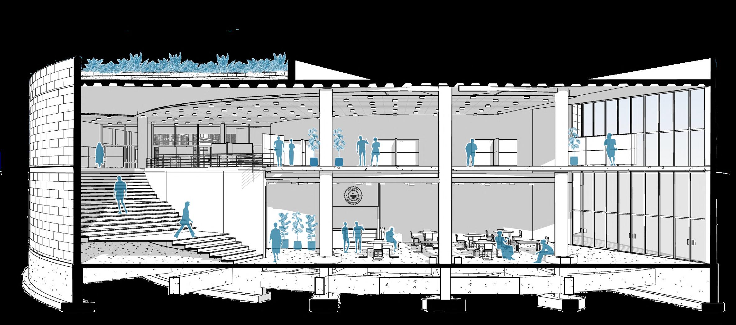 The group responds to an architectural adaptation to the existing electrical and computer engineering building through design drivers upholding wellbeing for students, challenging the rigorous and demanding lifestyle held in the existing conditions.