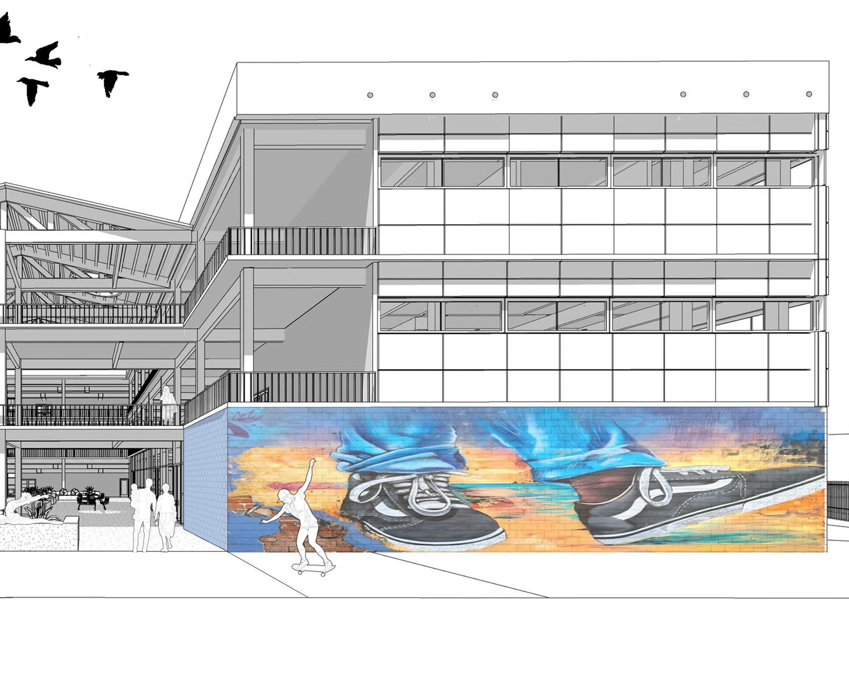 The programmatic focus of the school is a learning center for elementary students seeking after-school activity in the arts and young adults ages 18 to 25. The school is special in particular for its mission to provide resource spaces to respond to Leimert’s needs for higher education, life sucess, and community union.