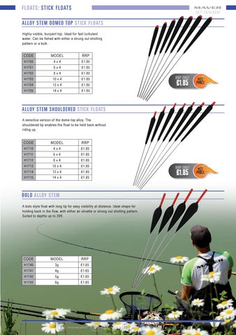 A L L OY S T EM S HO ULD ER E D STI CK FLOATS A sensitive version of the dome top alloy. The shouldered tip enables the float to be held back without riding up.