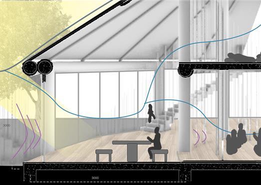 The openness of the café was intended to create openness, as the café is surrounded by swimming pool and soccer field. It can also work as passive cooling that allow air to come in and out.
