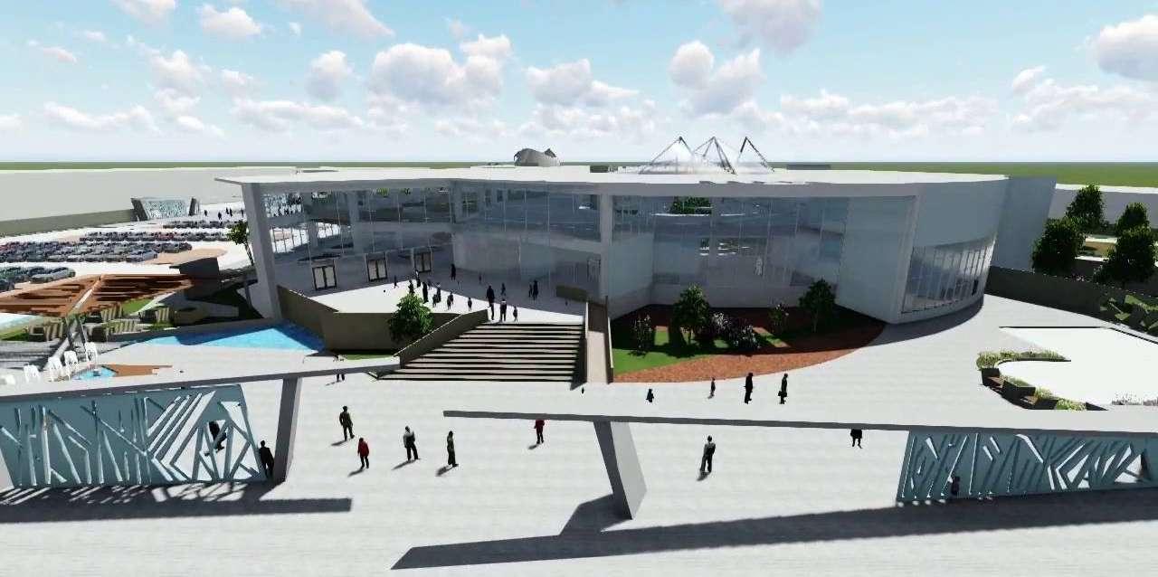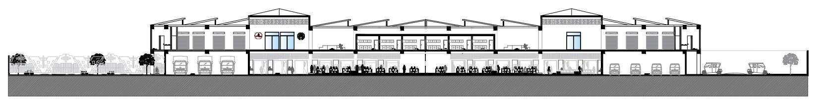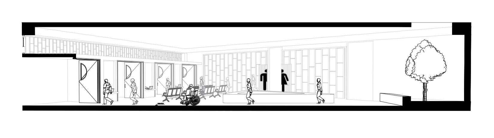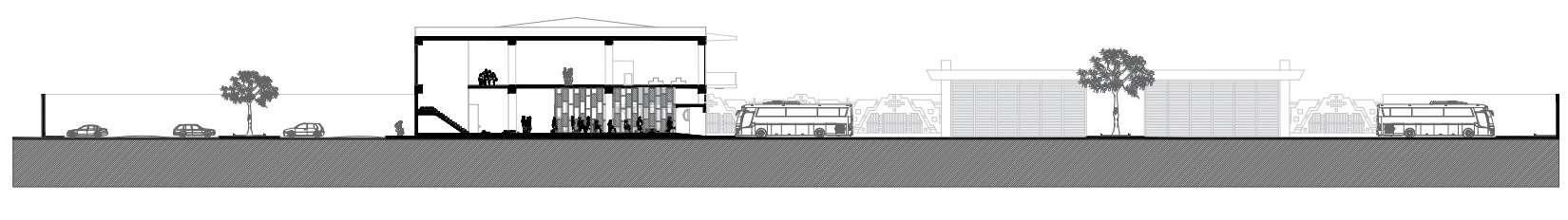 CORTE EN PERSPECTIVA ZONA DE ESPERA EMBARQUE PRIMER NIVEL