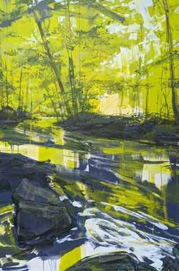 “GREEN MORNING ON THE PIGEON RIVER” Acrylic on canvas, 72 x 48 in.