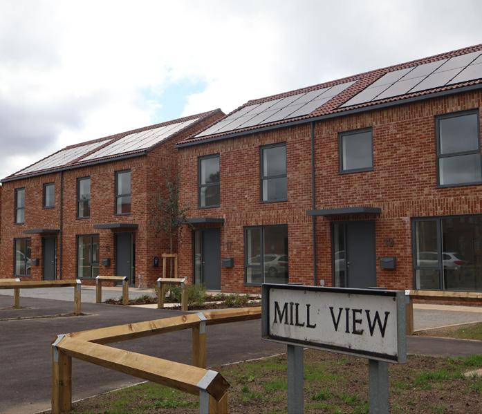 The new homes consist of two 2-bedroom homes and two 3-bedroom homes on the site where 13, 15, 17 and 19 previously stood. Each house has two parking spaces and heating is via air source heat pumps with underfloor heating. There are also solar panels and electrical vehicle chargers fitted to each property. The high standard of insulation and energy efficiency measures means the four homes are rated EPC band B.