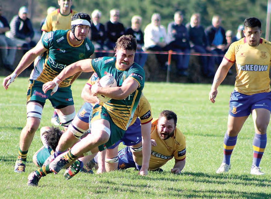 out of the match on the weekend, most notably Nasi Manu and Tom Middleton, who are likely to be out of action for this week’s game against King Country. Steve Devereux Matt Markham Kendra Cocksedge Mid Canterbury flanker, Kaydis Hona on the charge during his side’s golden point win over North Otago on Saturday. PHOTO KAYLA HODGE OAMARU MAIL/ODTJOURNALIST