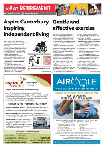 Support and resources for independent living Aspire Canterbury is a non-for-profit community focused organisation committed to meeting the needs of older persons, and people with disability or mobility issues. Our aim is to assist people in making informed decisions about accessing services or choosing products that will assist you in your daily lives.