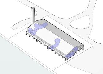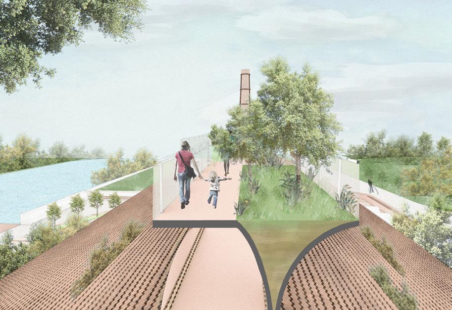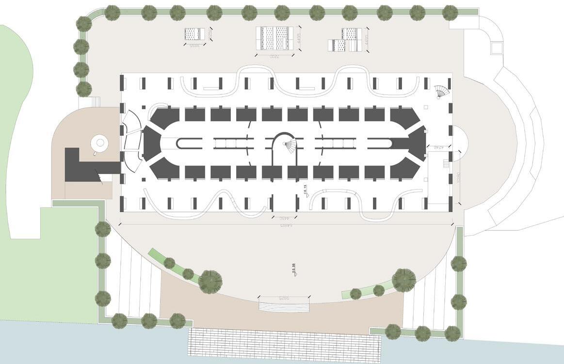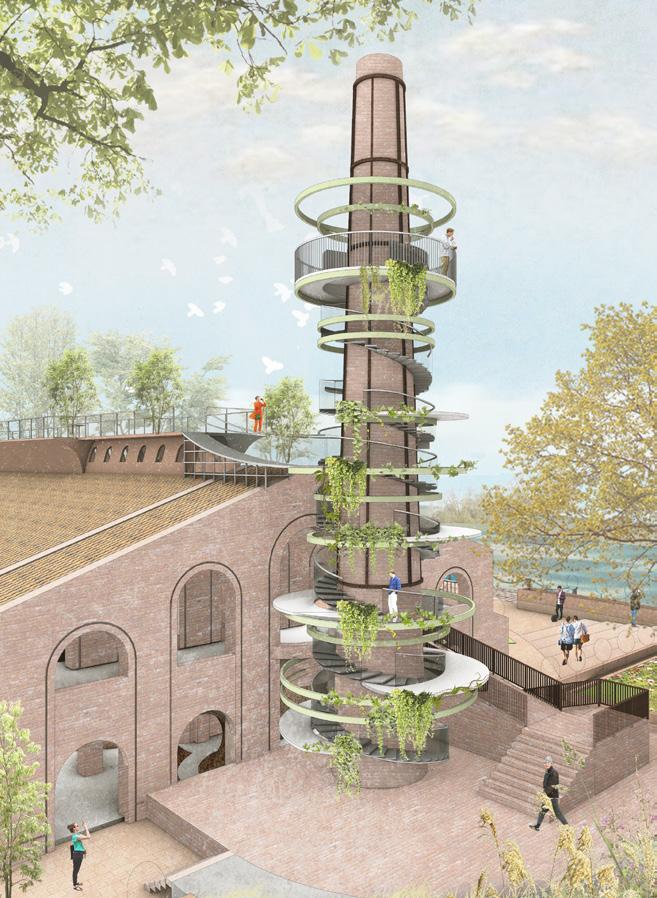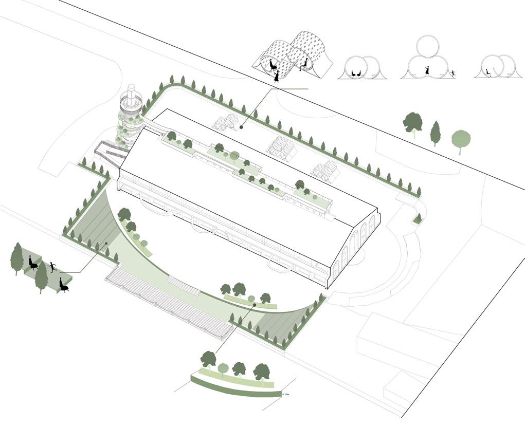 We hope that the surrounding people can participate in it, so as to promote development. The frst point is to transform the original internal production mode of the site into an external exhibition, so that the site is changed from closed to open. The second point is to start from the fring process, from the original industrial land to public space. The third point responds to environmental sustainability issues by changing the site's original identity from a carbon emitter to a carbon absorber.