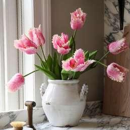 Faux Pink Fringed Tulip Vase: Darsham Vase - Small