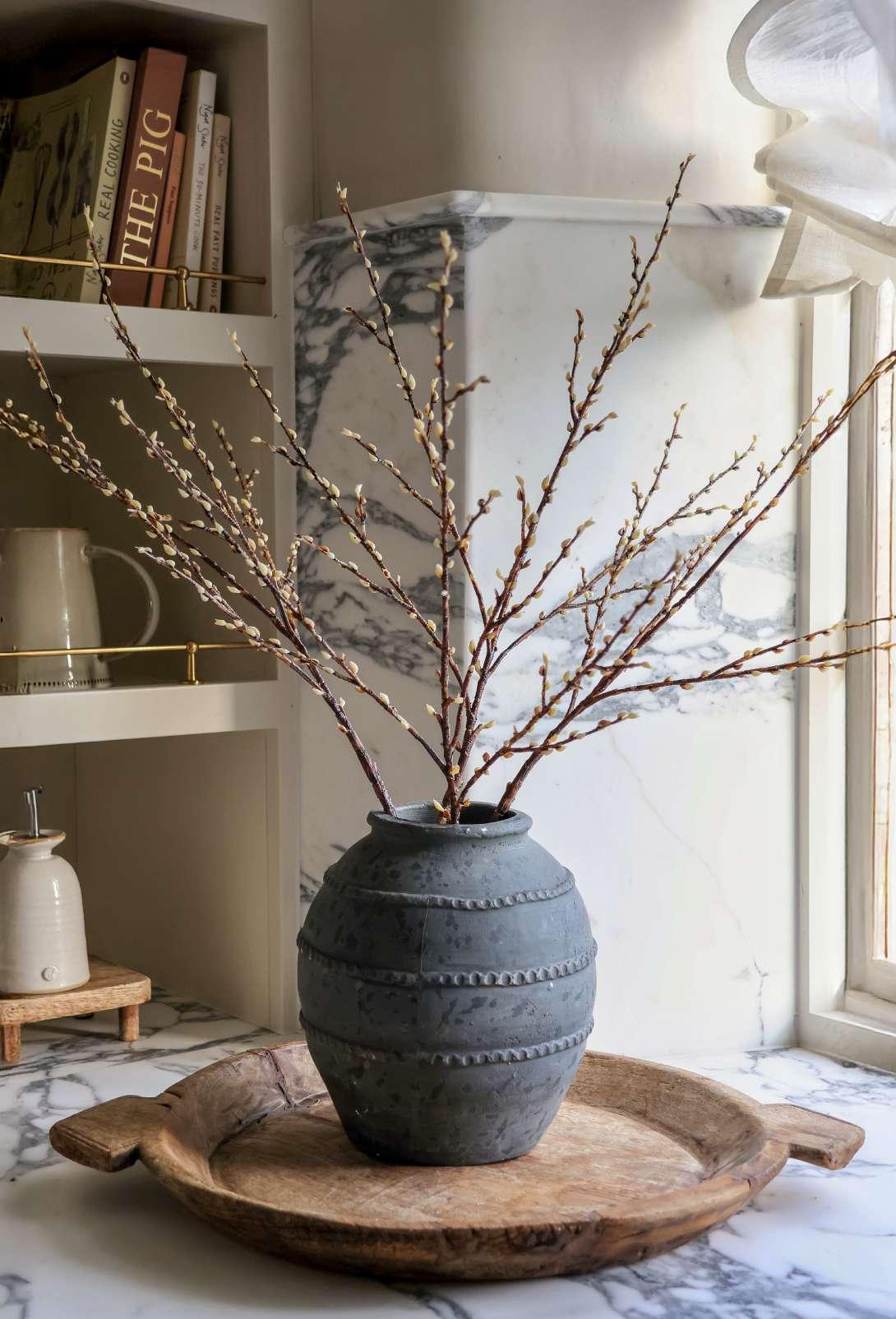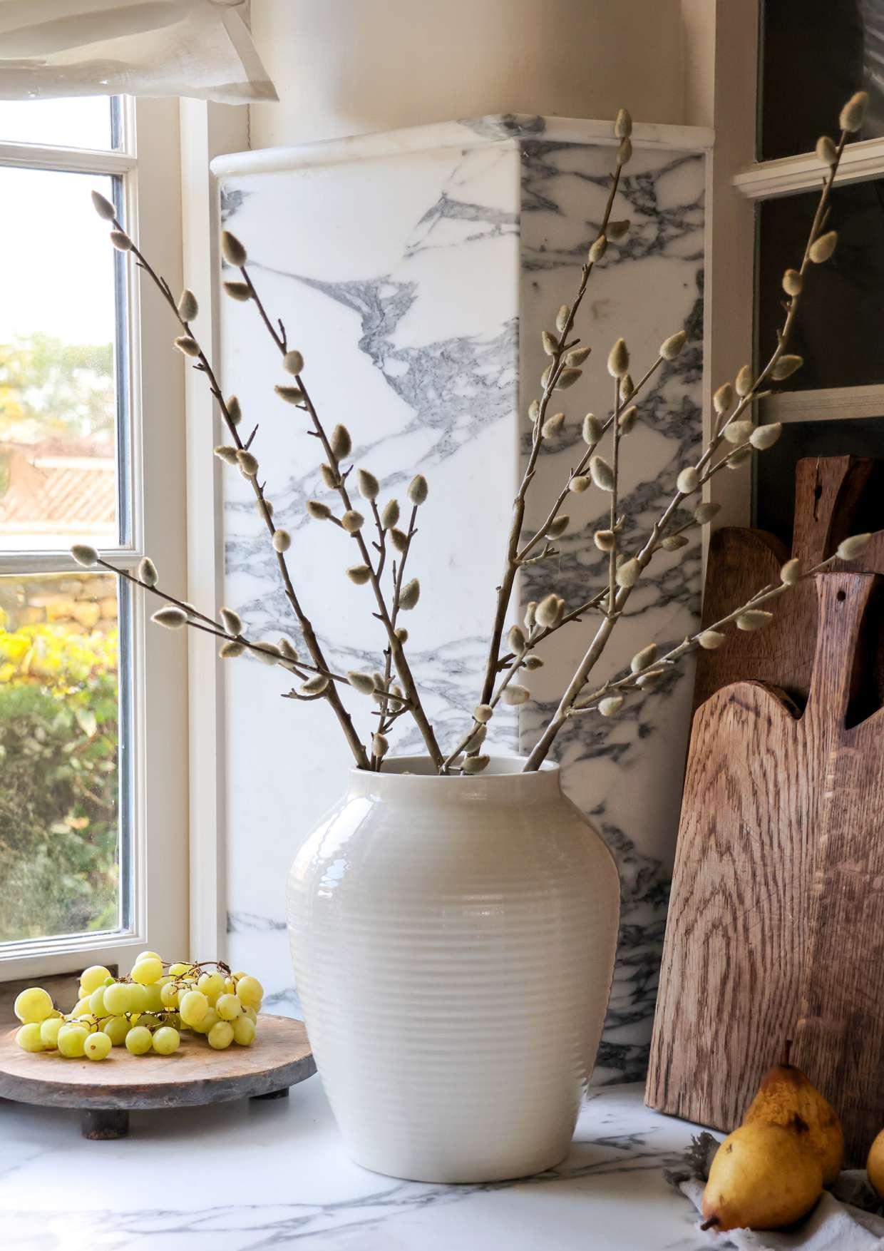 Faux Pussy Willow Stem Vase: Lavenham Vase