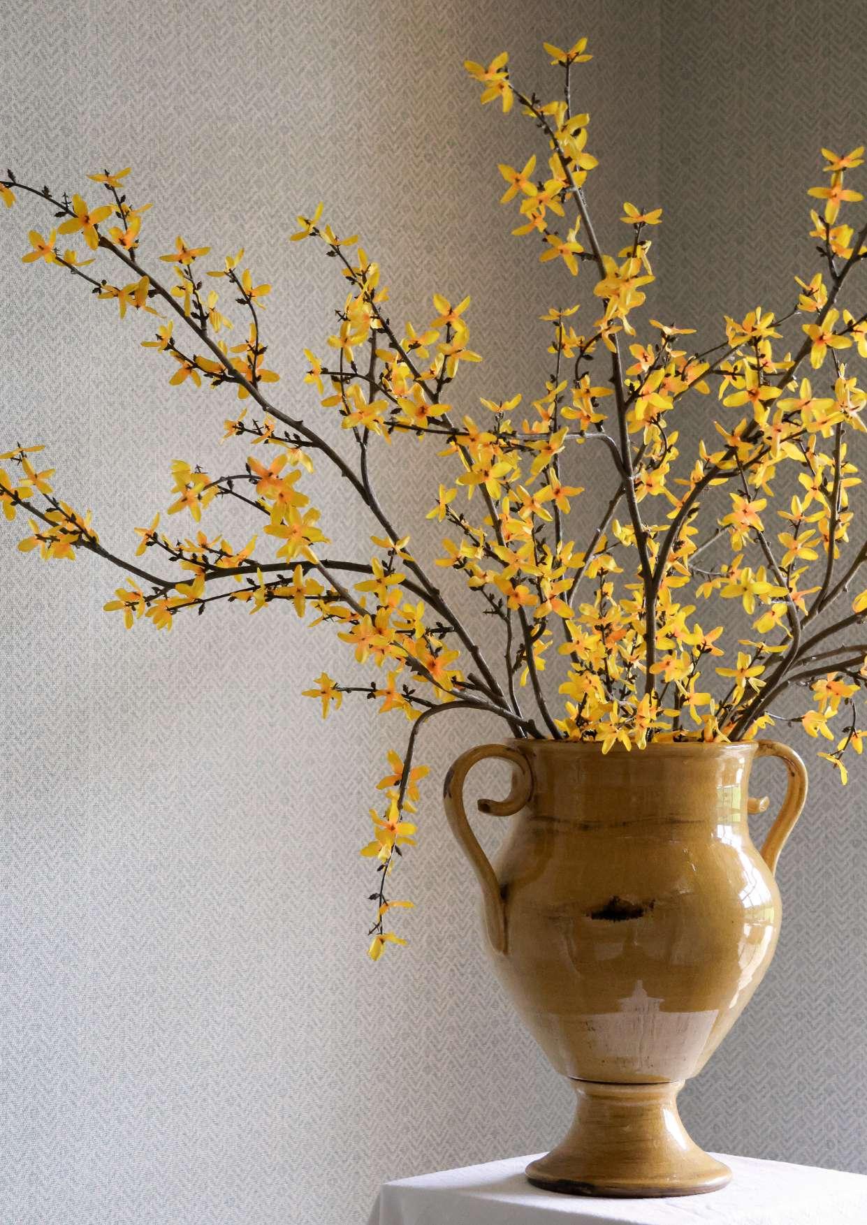 I have also long admired forsythia. Electric, joyful and fleeting. Designing our own true to life stems was a particular pleasure, especially knowing how beautifully they sit in our Helmingham vase.