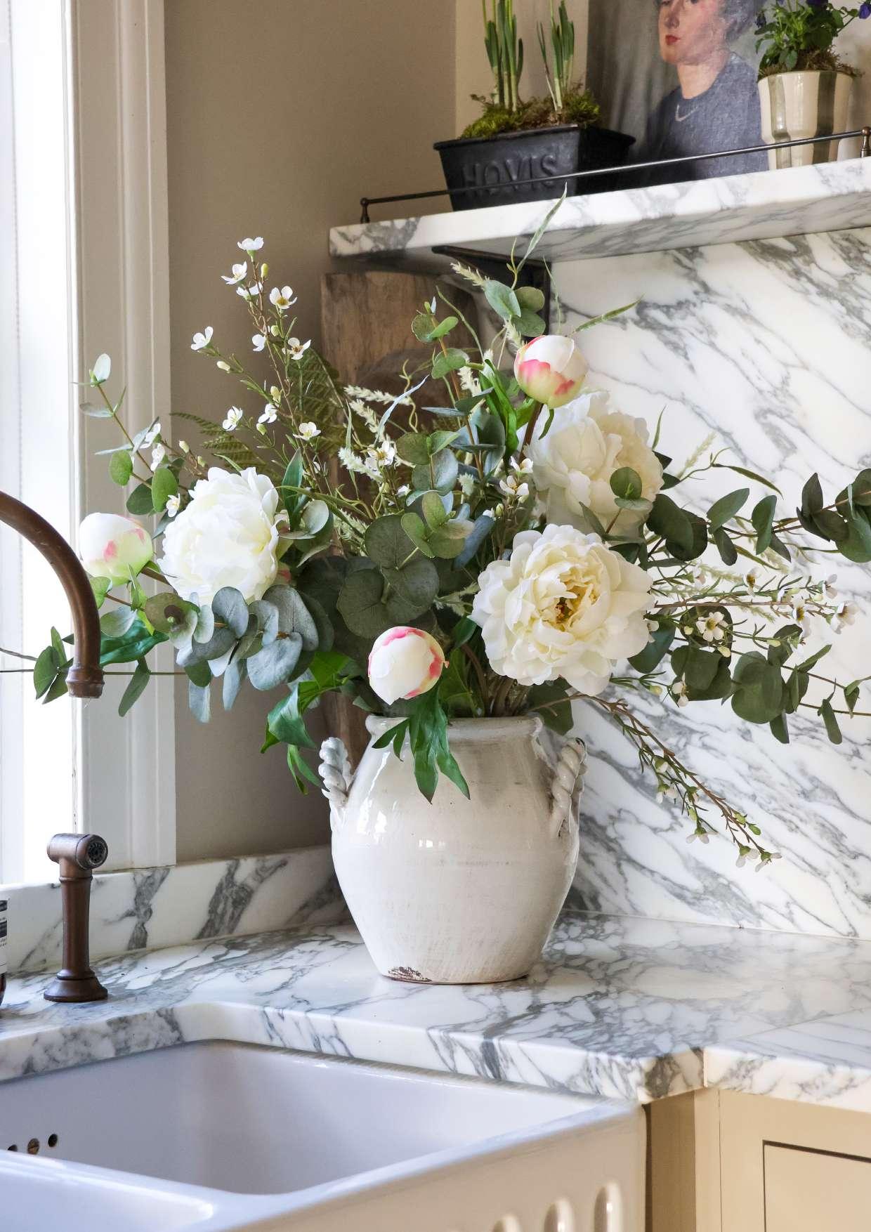 White Peony Arrangement Vase: Darsham Vase - Small