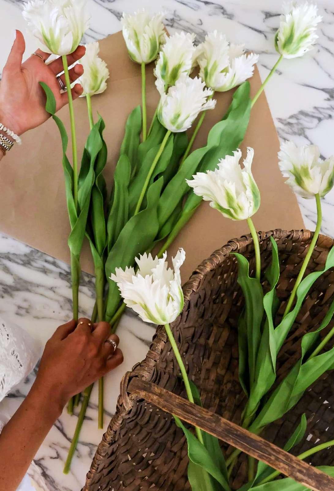 Faux White Double Tulips