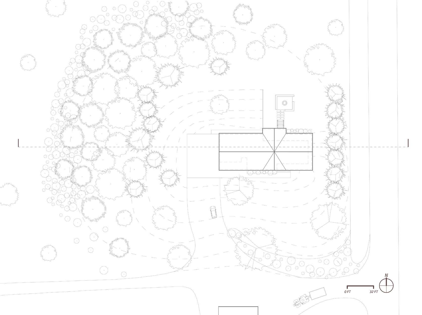 Analyzing the site gave me a better understanding of the surroundings and overall constraints. I first looked at the surrounding area, including part of the small town nearby. As I focused more directly on the site, I took note of existing and demolished structures, natural elements, utilities, and site access. Initially the potential site locations were to the north or to the south of the area of focus. After site analysis, I was able to conclude that the north site location would cohere the best.
