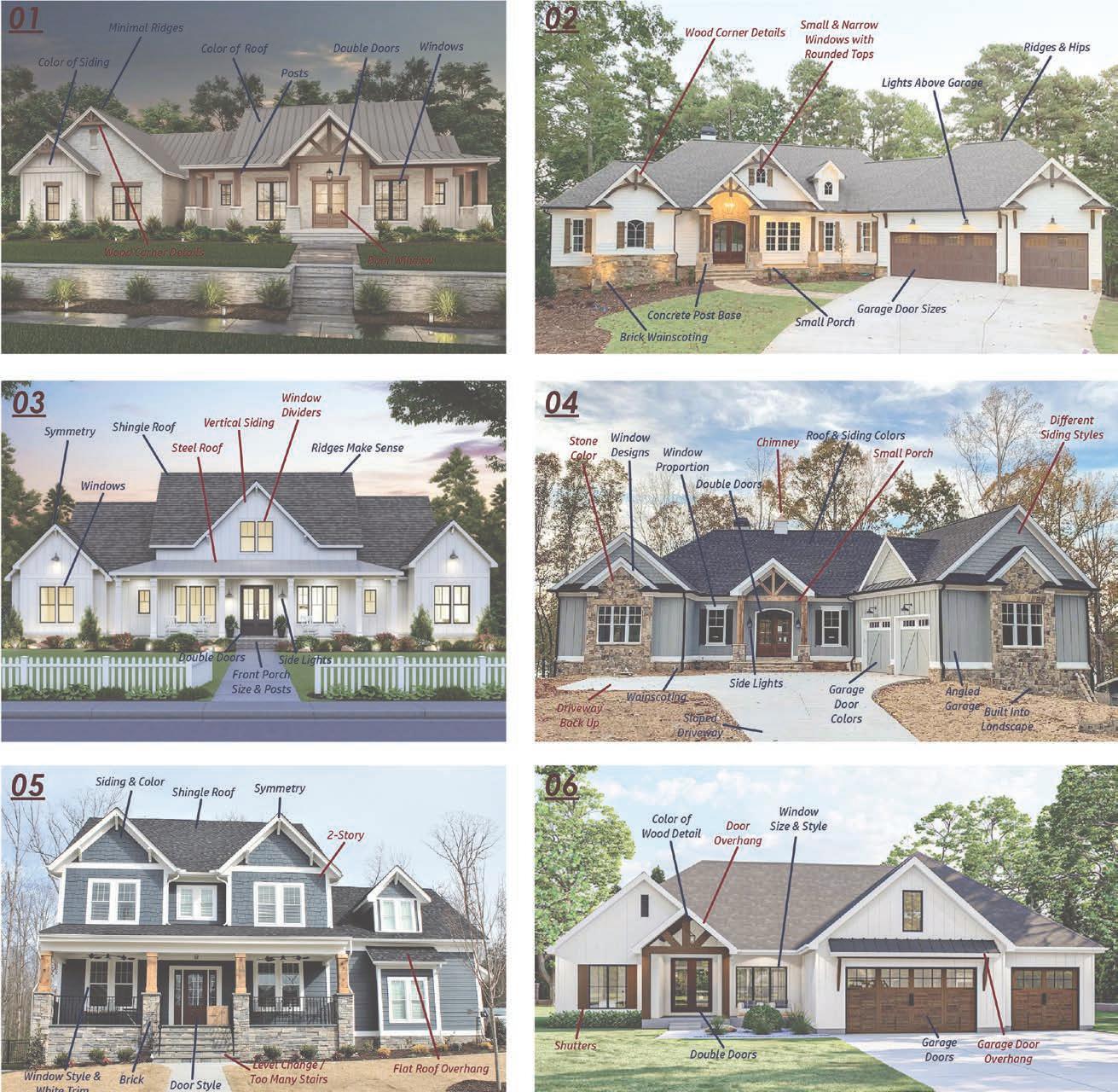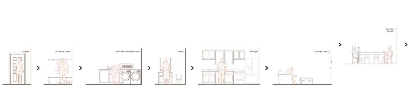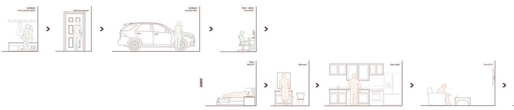 When thinking about the style of the house, I looked at examples from architects. From these, I focused on the ways in which the materials were placed and the arrangment and size of windows and doors. To get a better idea of what type of style was appealing to my parents, I created an activity in which I showed them images of houses and had them point out what they liked and disliked about each one. I also created a narrative for each of the spaces within based on the dysfunctionality of their previous house.