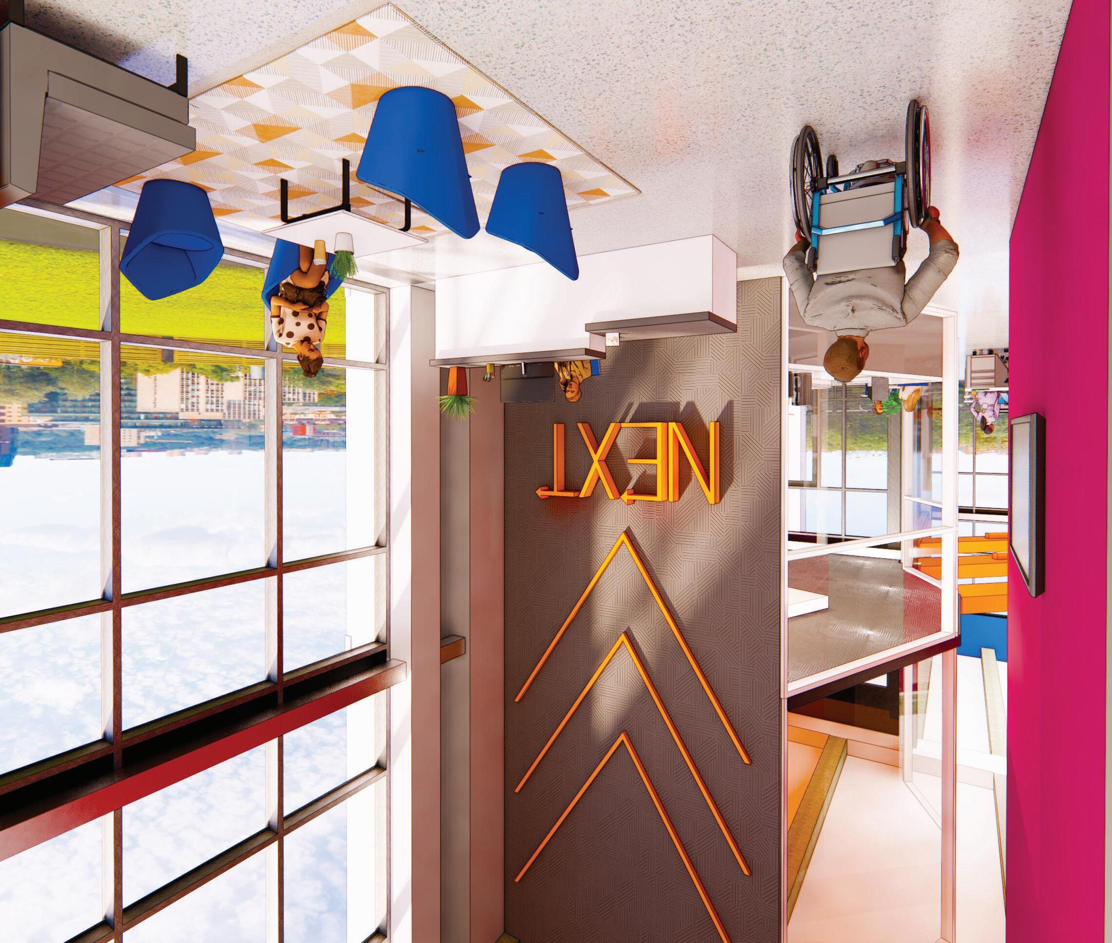 NEXT is an architecture and design firm located in Dallas, Texas. The office is on the third floor of the Victory Commons One building consisting of 11,000 square feet not including the mezzanine level. The surrounding site is in an urban Dallas area and consists of many trails, transportation options, event centers, and restaurants. NEXT really wanted to focus on their new goals with the company and this was created in the new space by bringing the idea of innovative synergy into it.