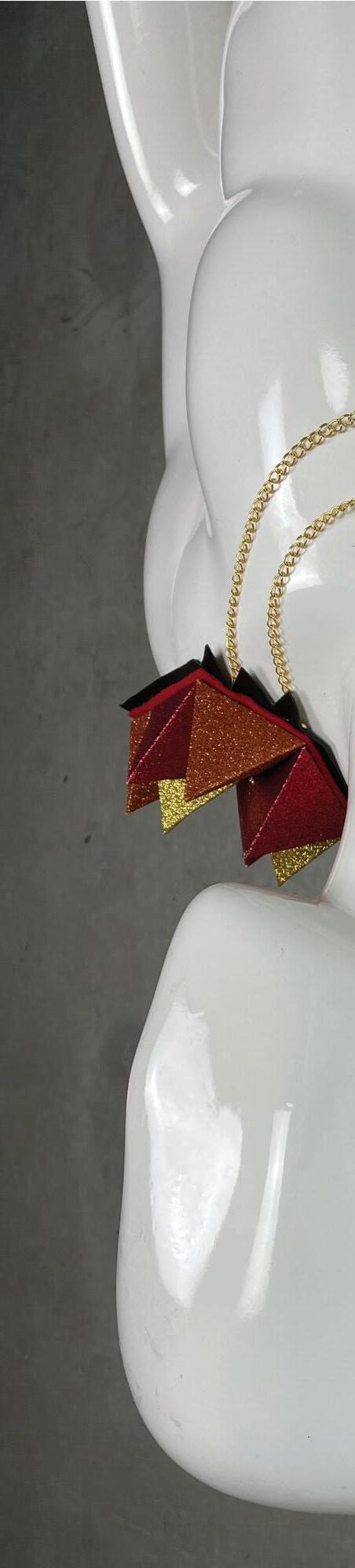 First year platonic solid study creating an aggregate garment out of tetrahedrons that symbolize fire elements.