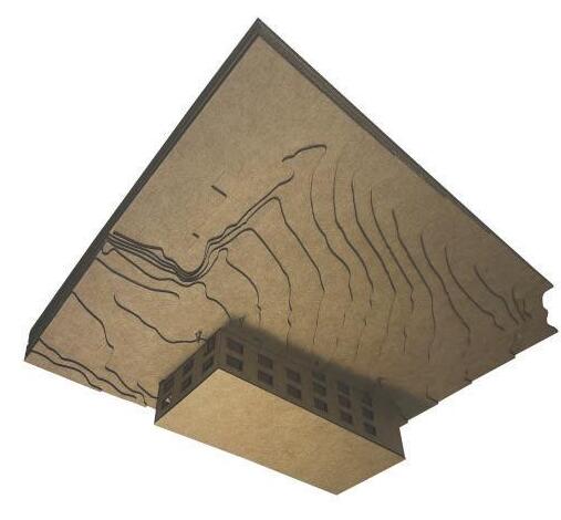 Topography study model to understand the surrounding site of a current project as well as a programming concept model.