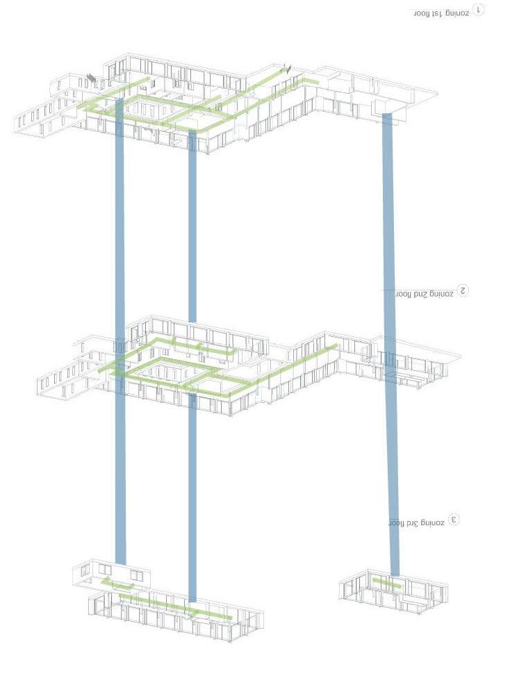 An Adaptive Reuse building located in Paderborn, Germany. The building is a large site and close to a river that has biking and walking trails. The intention of the project was to create an adaptive reuse building that would establish a community with the housing for people aging independently. In this project, the clients asked for the outside community to be able to connect with residents as well. Overall, they imagined the residents to be a variety of people with different lifestyles.