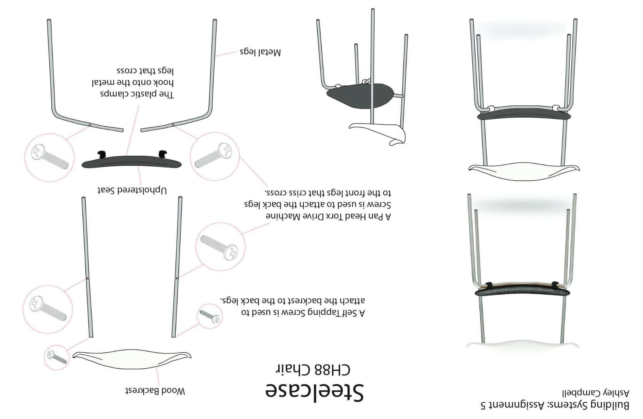 Detailed Adobe Illustrator drawings modeled after chairs and door jamb systems.