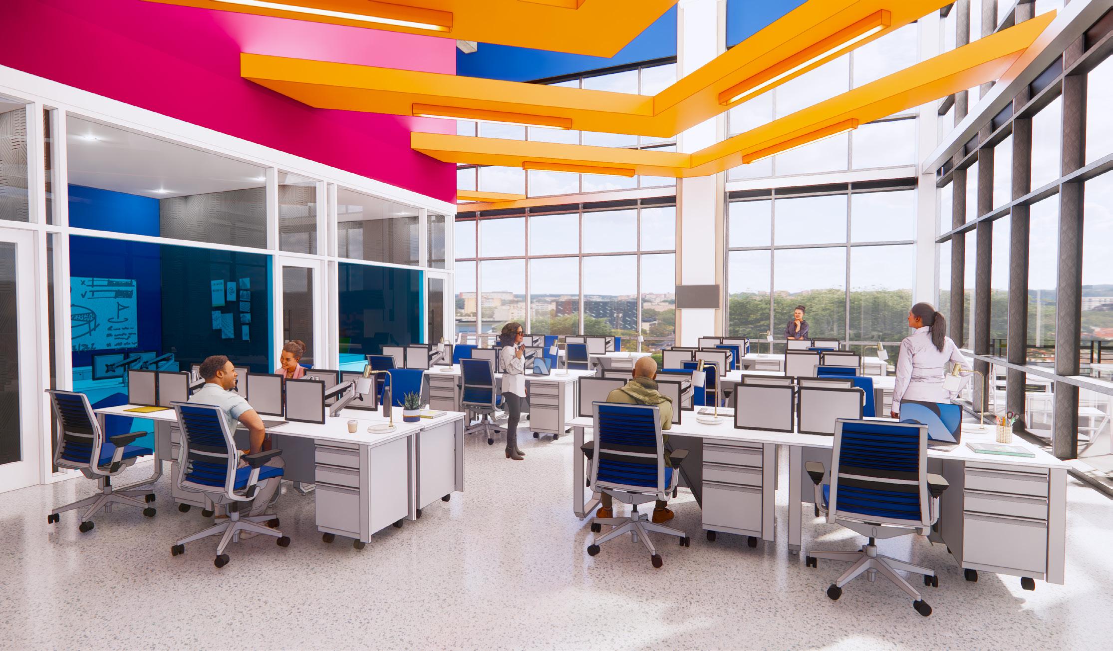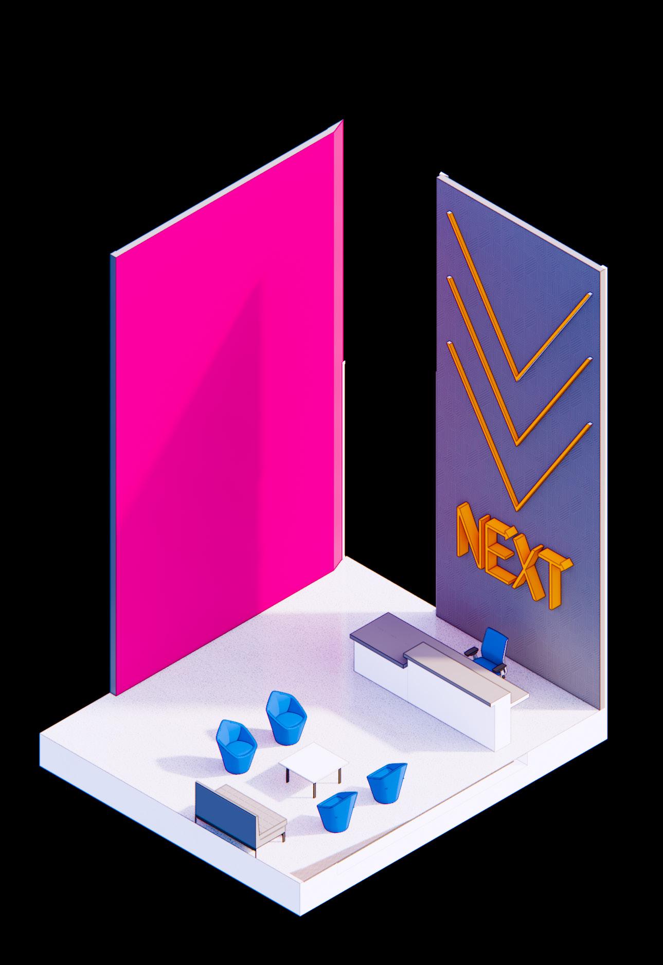 NEXT reception desk and waiting area for anyone who enters this floor of the building. A full-time receptionist occupies the space and is available for help as needed.