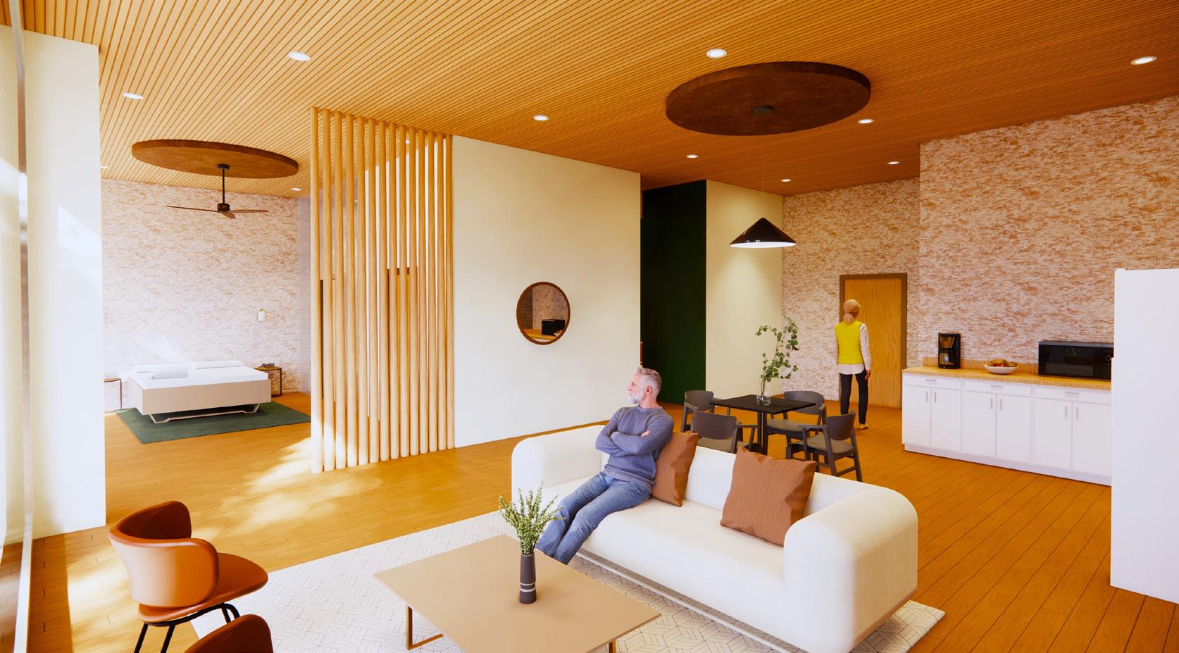 An Adaptive Reuse building located in Paderborn, Germany. The building is a large site and close to a river that has biking and walking trails. The intention of the project was to create an adaptive reuse building that would establish a community with the housing for people aging independently. In this project, the clients asked for the outside community to be able to connect with residents as well. Overall, they imagined the residents to be a variety of people with different lifestyles.