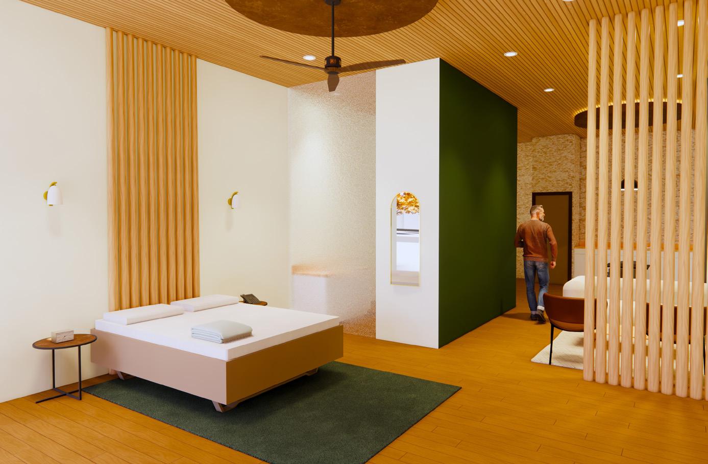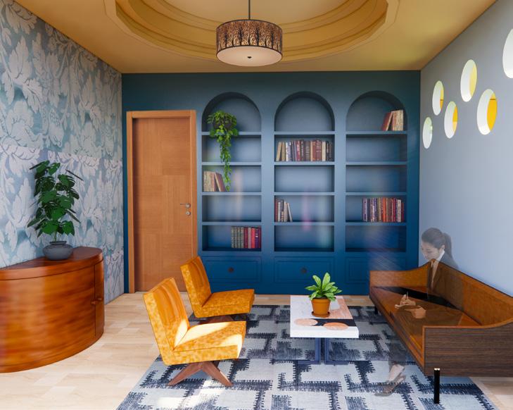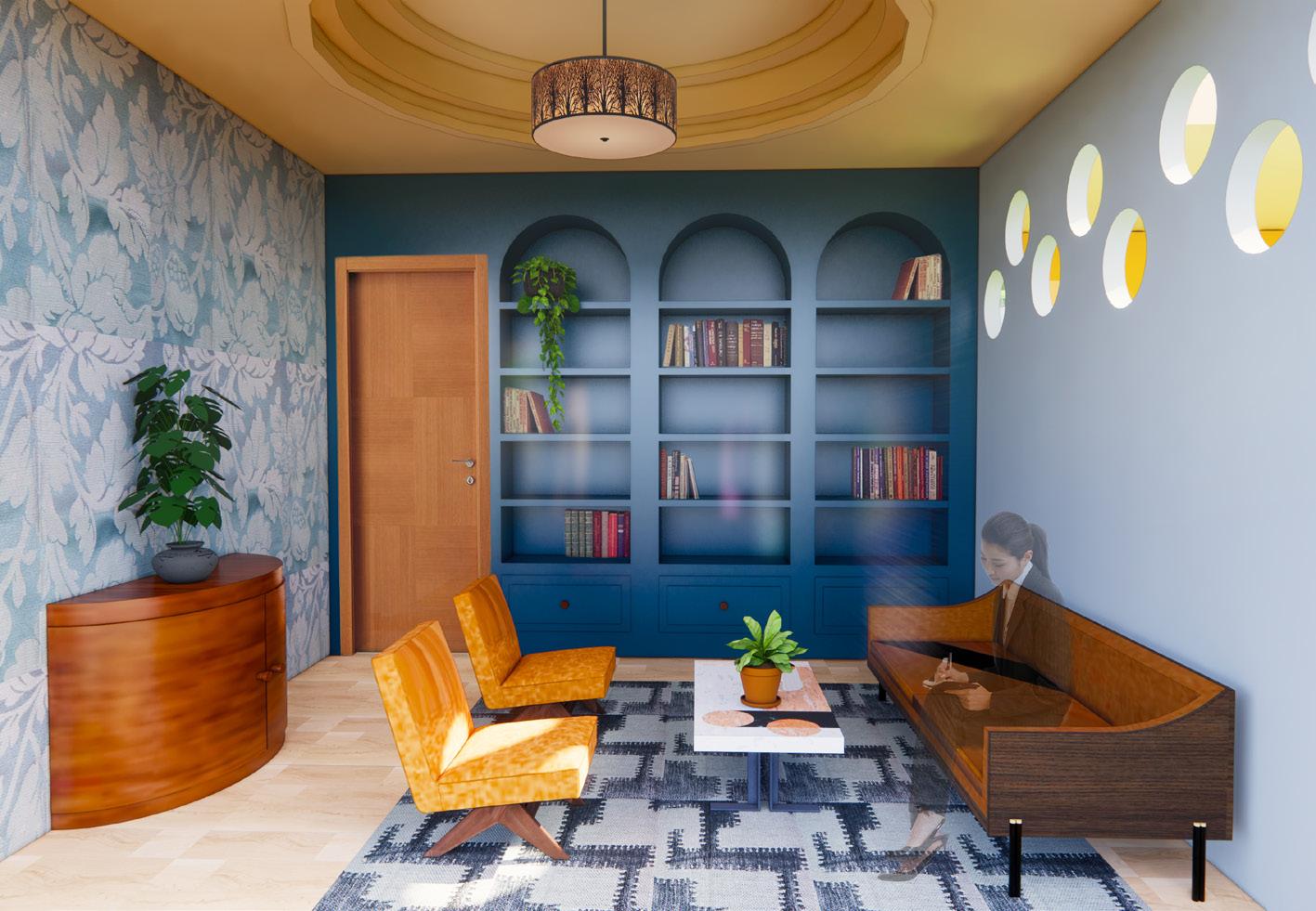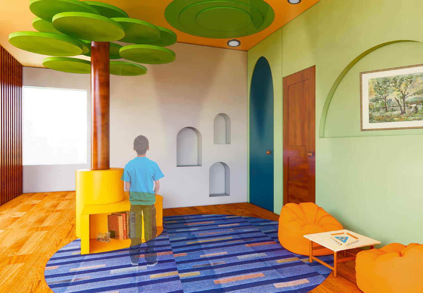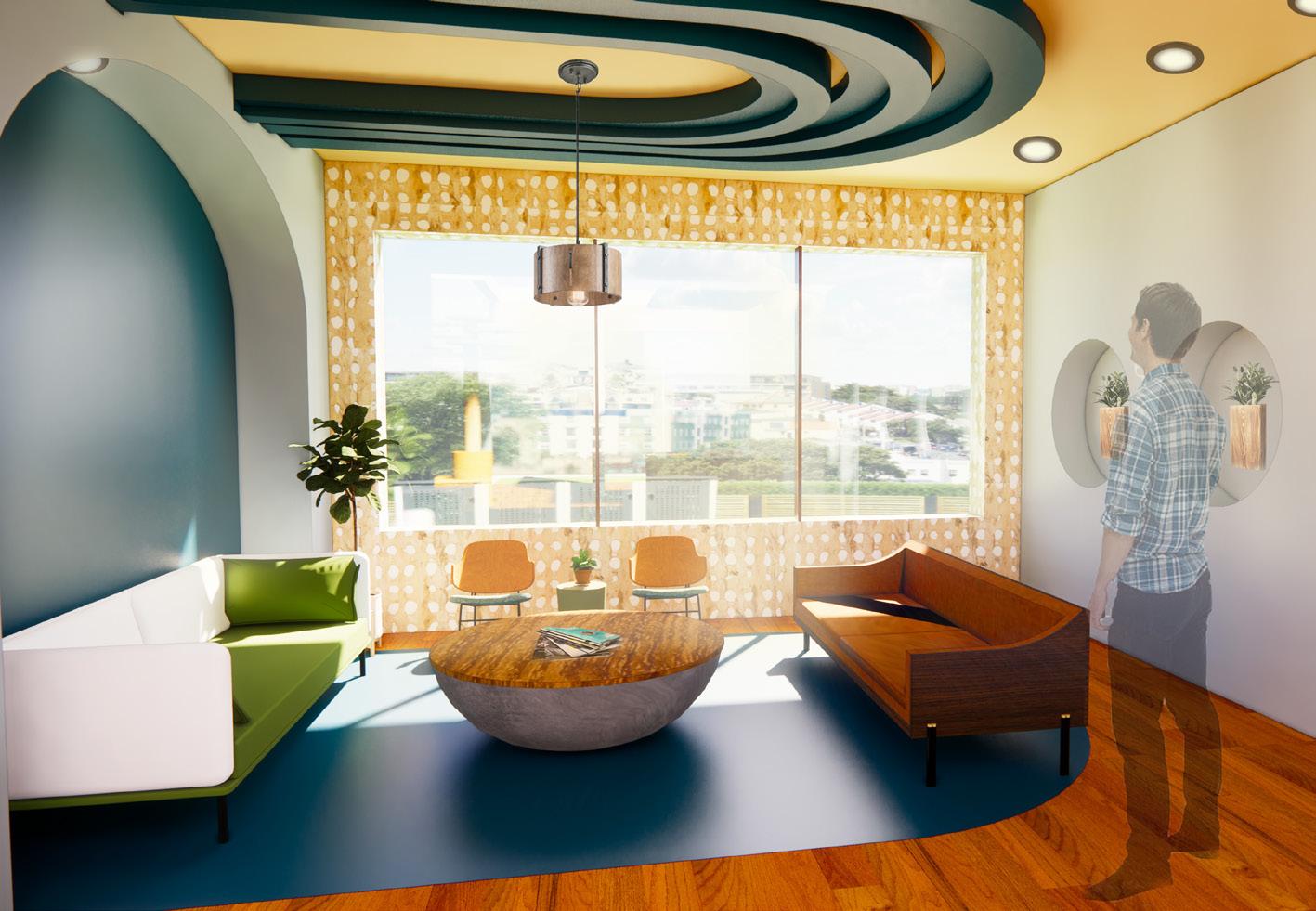 The psychology center located in Reserve, Louisiana was designed for people affected by the poor air quality in the area. In the building, rounded edges are often included to give a sense of comfort to the patients. The idea of trees is also used in many of the spaces to reinforce the idea of healthy air quality. For the children’s courtyard, an atrium was created by making one half of the ceiling glass so that the patients feel like they can be there without the thought of unhealthy air exposure risks, but still gain access to more natural lighting. To tie all of these ideas together I created a collage for items that would be included in the cabinet of curiosity located in the building. I also gathered materials consisting of many types of wood and fabrics while using colors including browns, blues, greens, and oranges throughout.