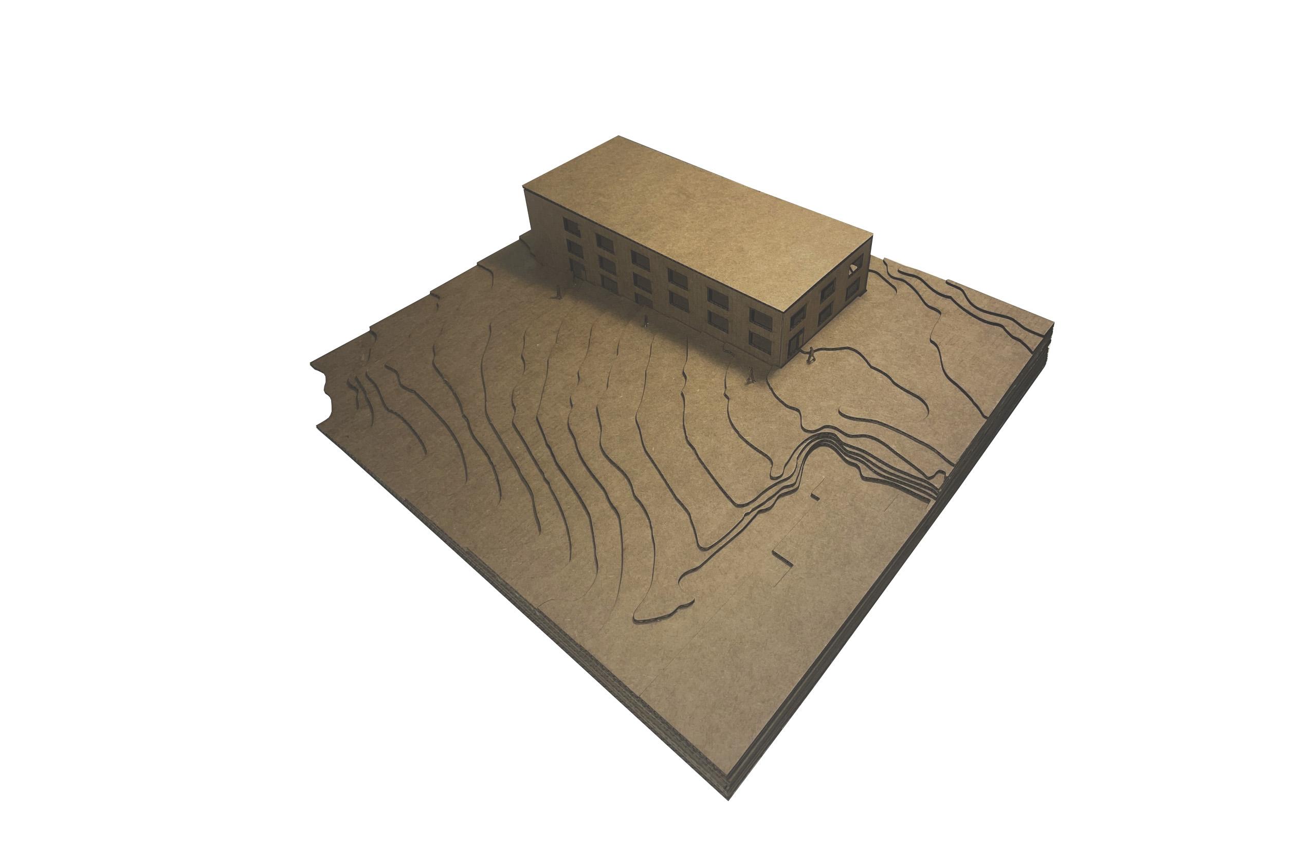 Topography study model to understand the surrounding site of a current project as well as a programming concept model.