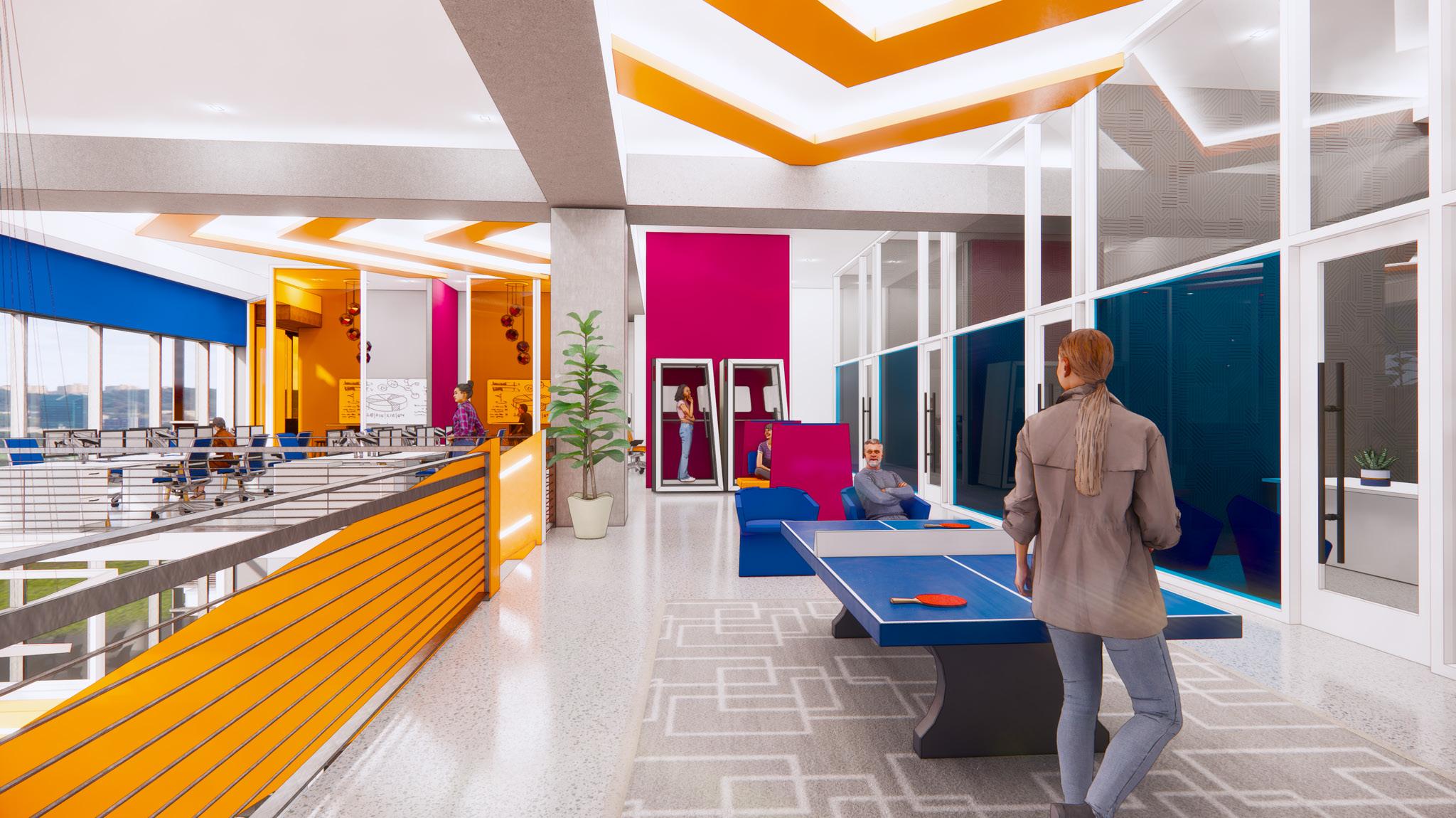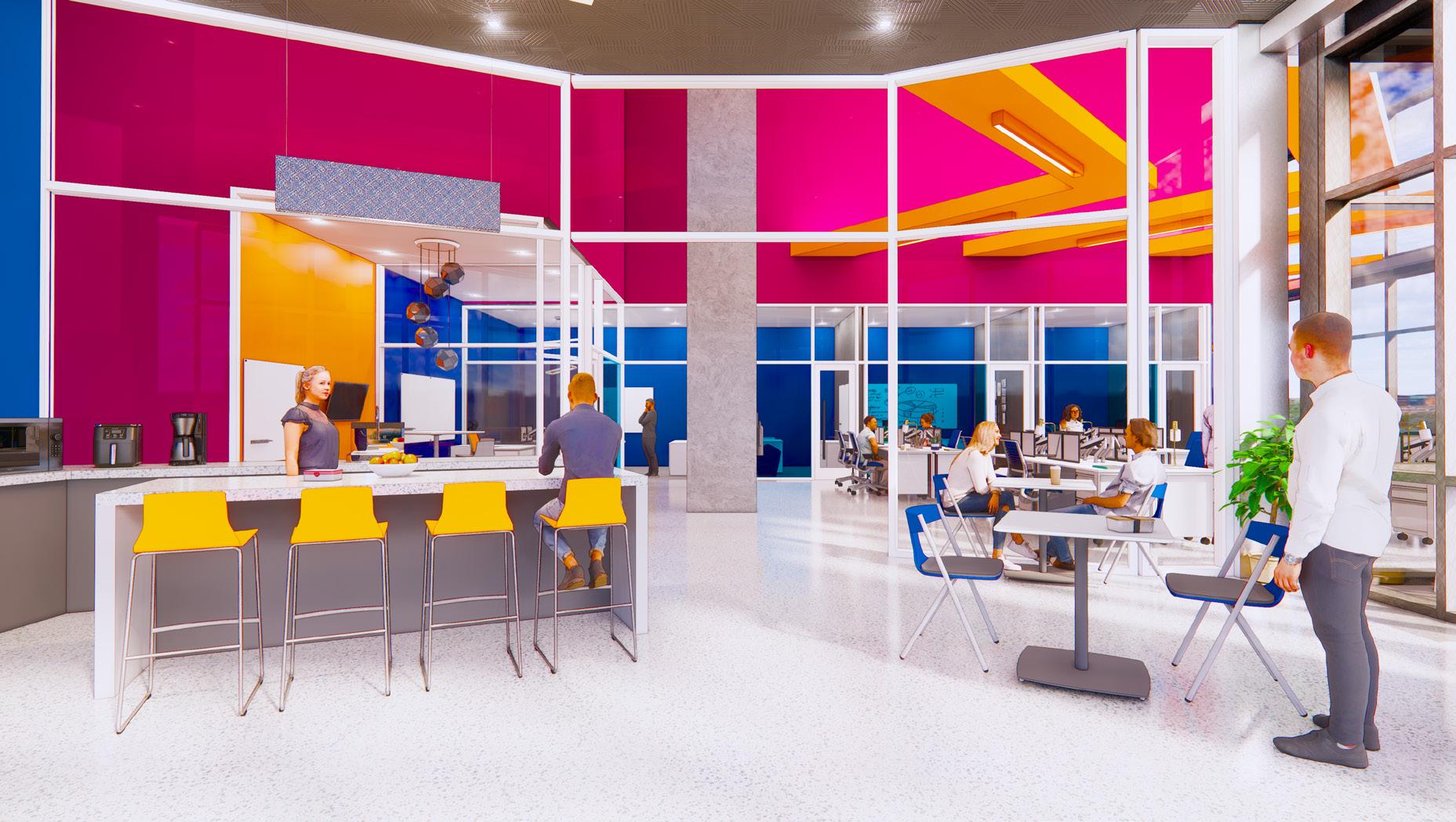 NEXT is an architecture and design firm located in Dallas, Texas. The office is on the third floor of the Victory Commons One building consisting of 11,000 square feet not including the mezzanine level. The surrounding site is in an urban Dallas area and consists of many trails, transportation options, event centers, and restaurants. NEXT really wanted to focus on their new goals with the company and this was created in the new space by bringing the idea of innovative synergy into it.