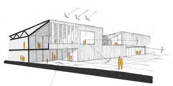 The city blocks were carved creating new routes and laneways within the development, encourage users to deviate from the main street into the activated laneways. Due to the adverse weather conditions in the area the laneways and building overhangs double as shelter while also creating visual interest in the facades. The centre of the development is envisaged to have an internal square which can act as a secondary gathering/ events space to the main square during adverse weather.