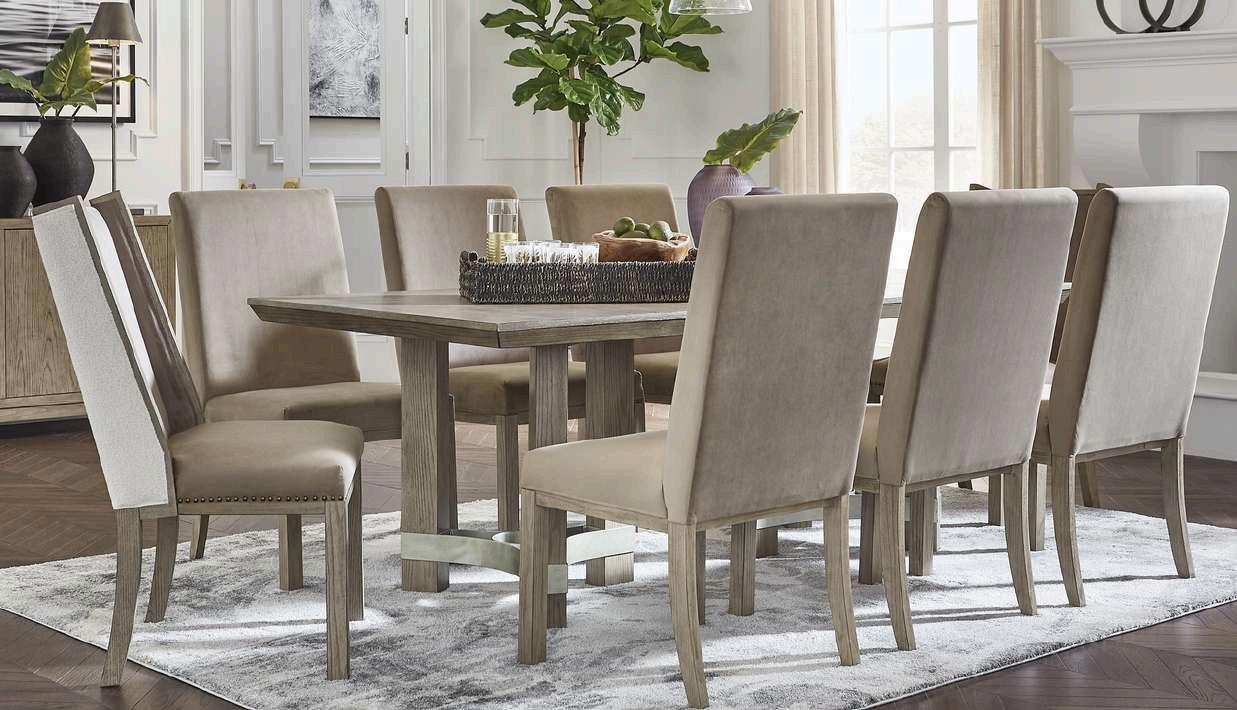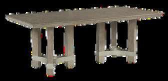 Un bello acto de equilibrio De líneas limpias y sencillamente llamativo, este comedor fusiona un aspecto de alto estilo con un toque de actitud casual. Su base de doble pedestal geométrico abierto ofrece una silueta moderna. El acabado gris desgastado, de gran textura visual, es rico en carácter